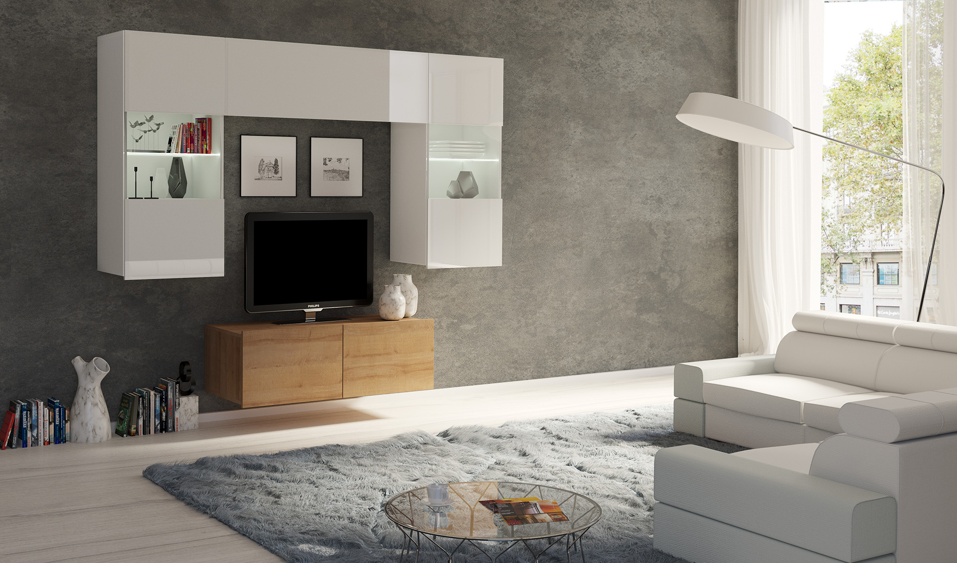 GAB Obývací stěna LORONA 10, Bílá/Zlatý dub 195 cm