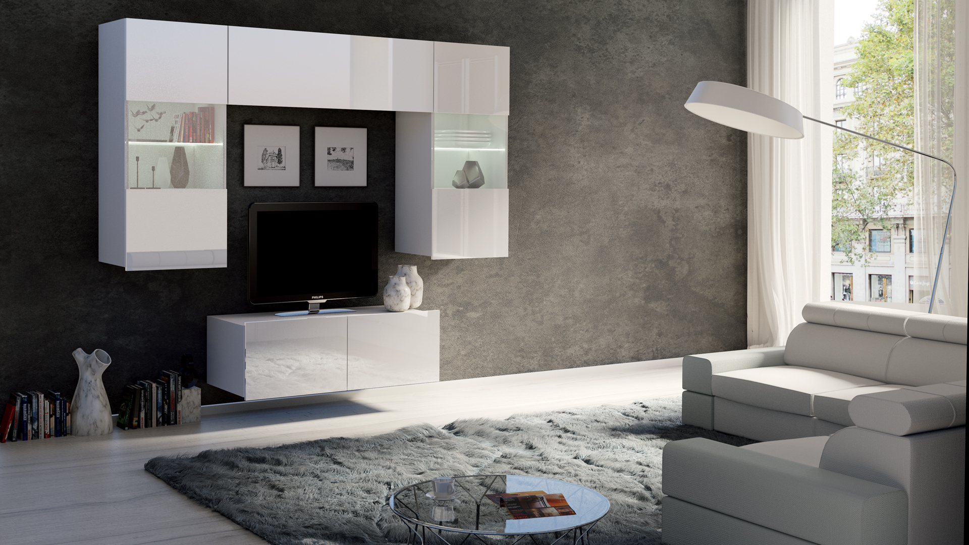 GAB Obývací stěna LORONA 10, Bílá 195 cm