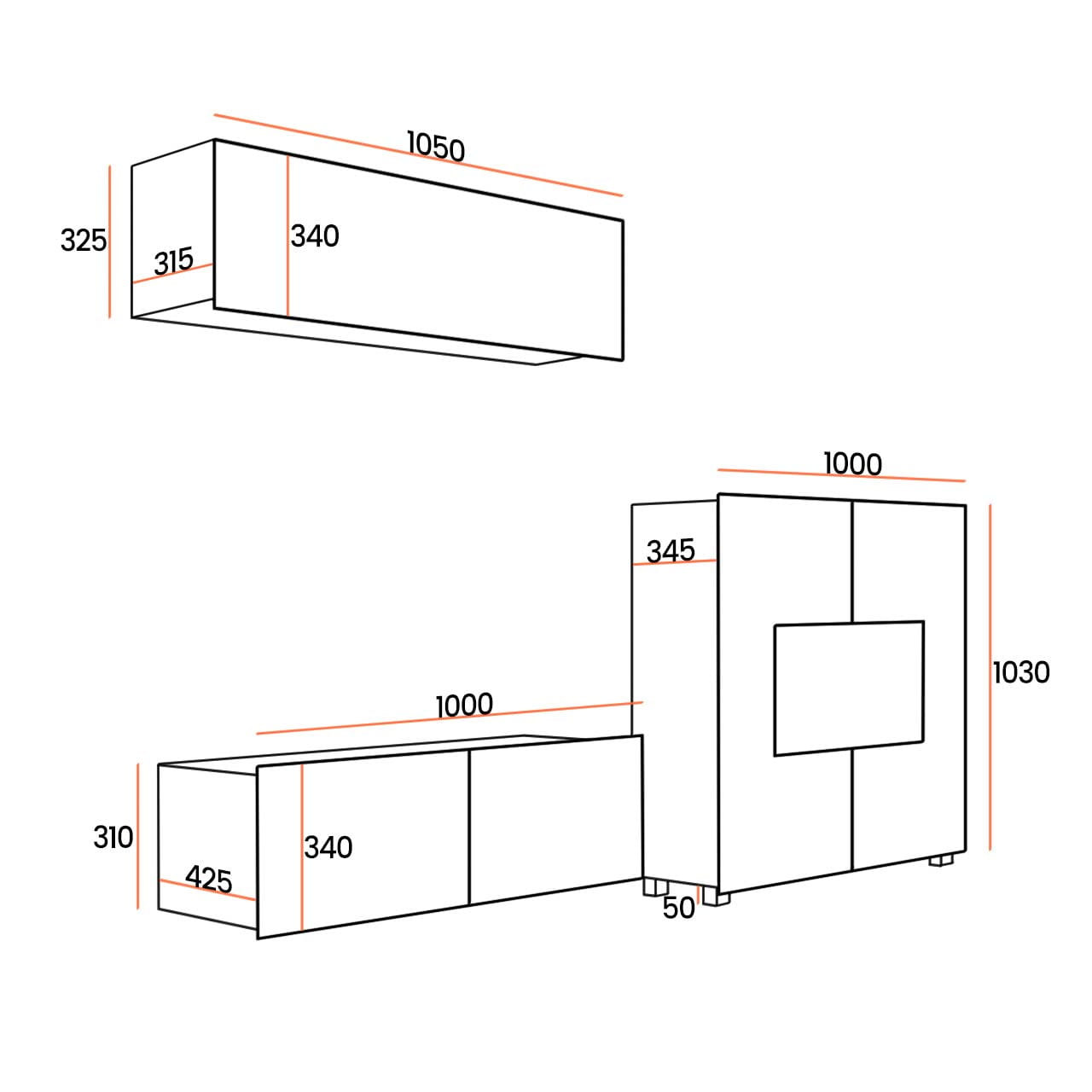GAB Obývací stěna LORONA 9, Bílá 105 cm