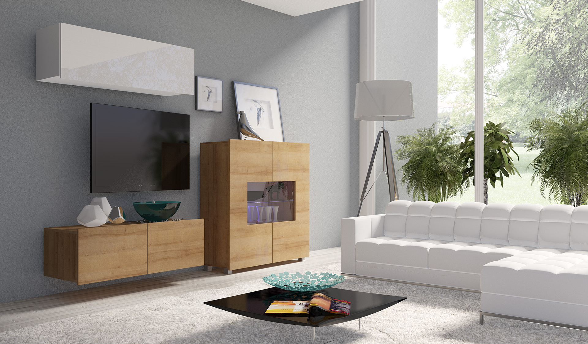 GAB Obývací stěna LORONA 9, Bílá/Zlatý dub 105 cm