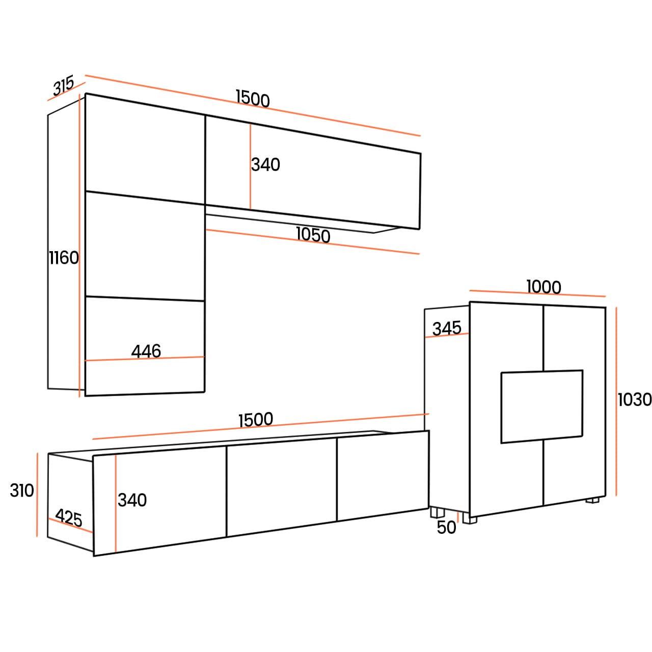 GAB Obývací stěna LORONA 3, Černá 150 cm