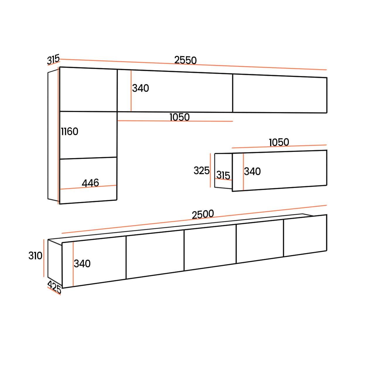 GAB Obývací stěna LORONA 4, Zlatý dub 255 cm