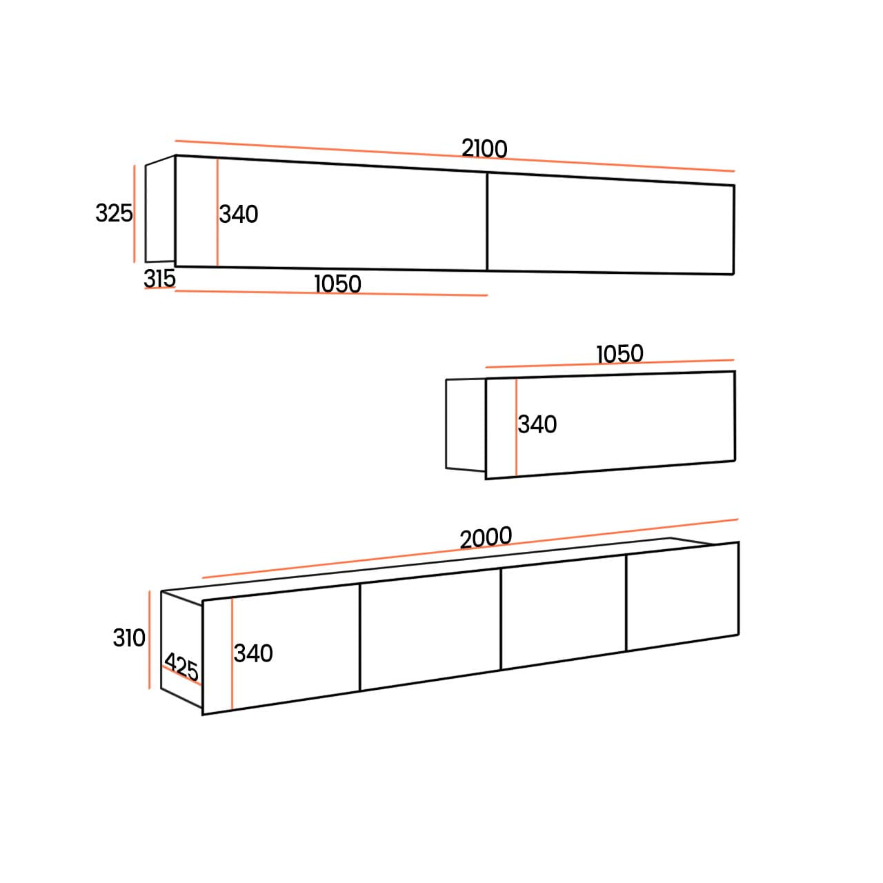 GAB Obývací stěna LORONA 8, Bílá/Černá 210 cm