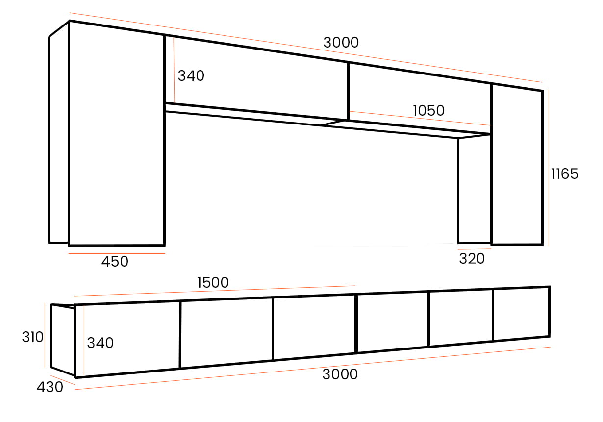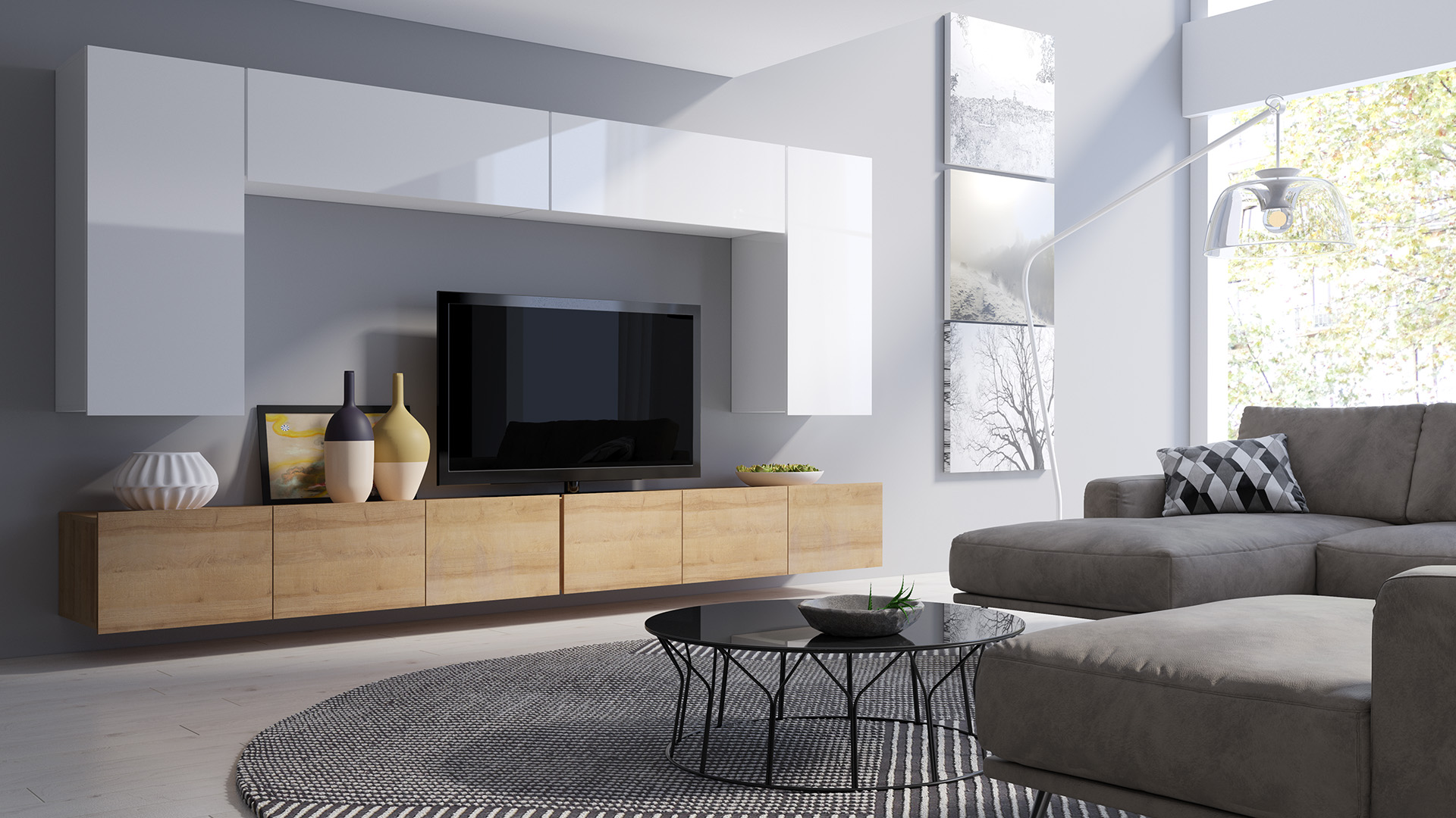 GAB Obývací stěna - LORONA 13, Bílá/Zlatý dub 300 cm
