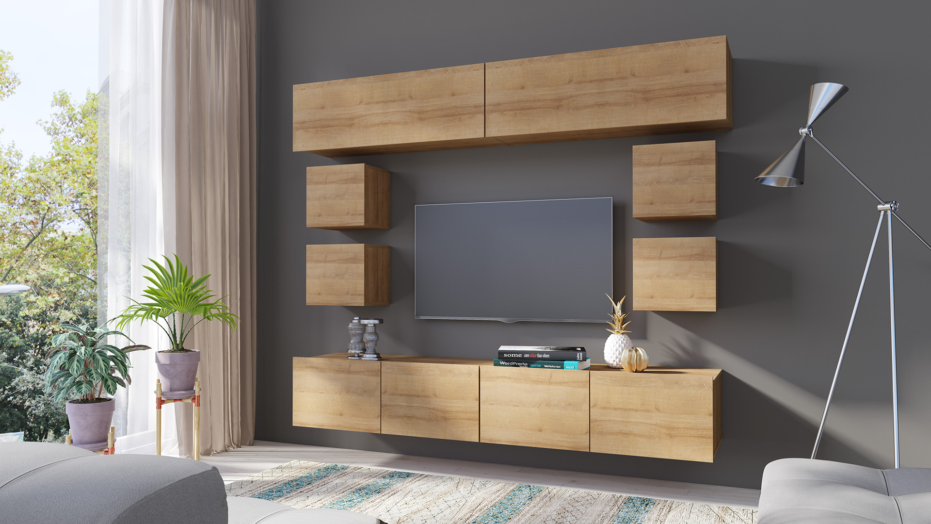 GAB Obývací stěna LORONA 16, Zlatý dub 210 cm