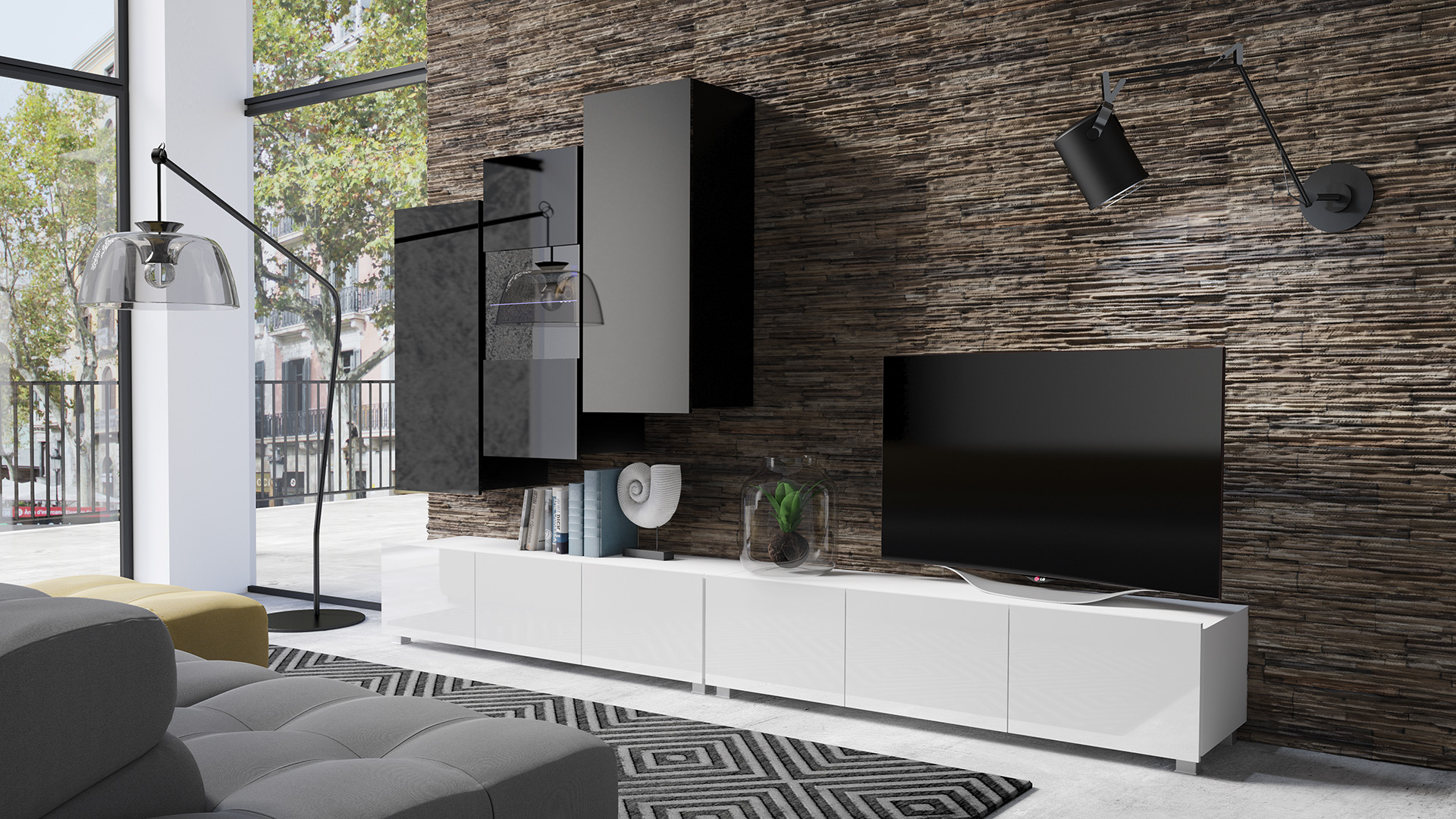 GAB Obývací stěna LORONOA 17, Bílá/Černá 300 cm