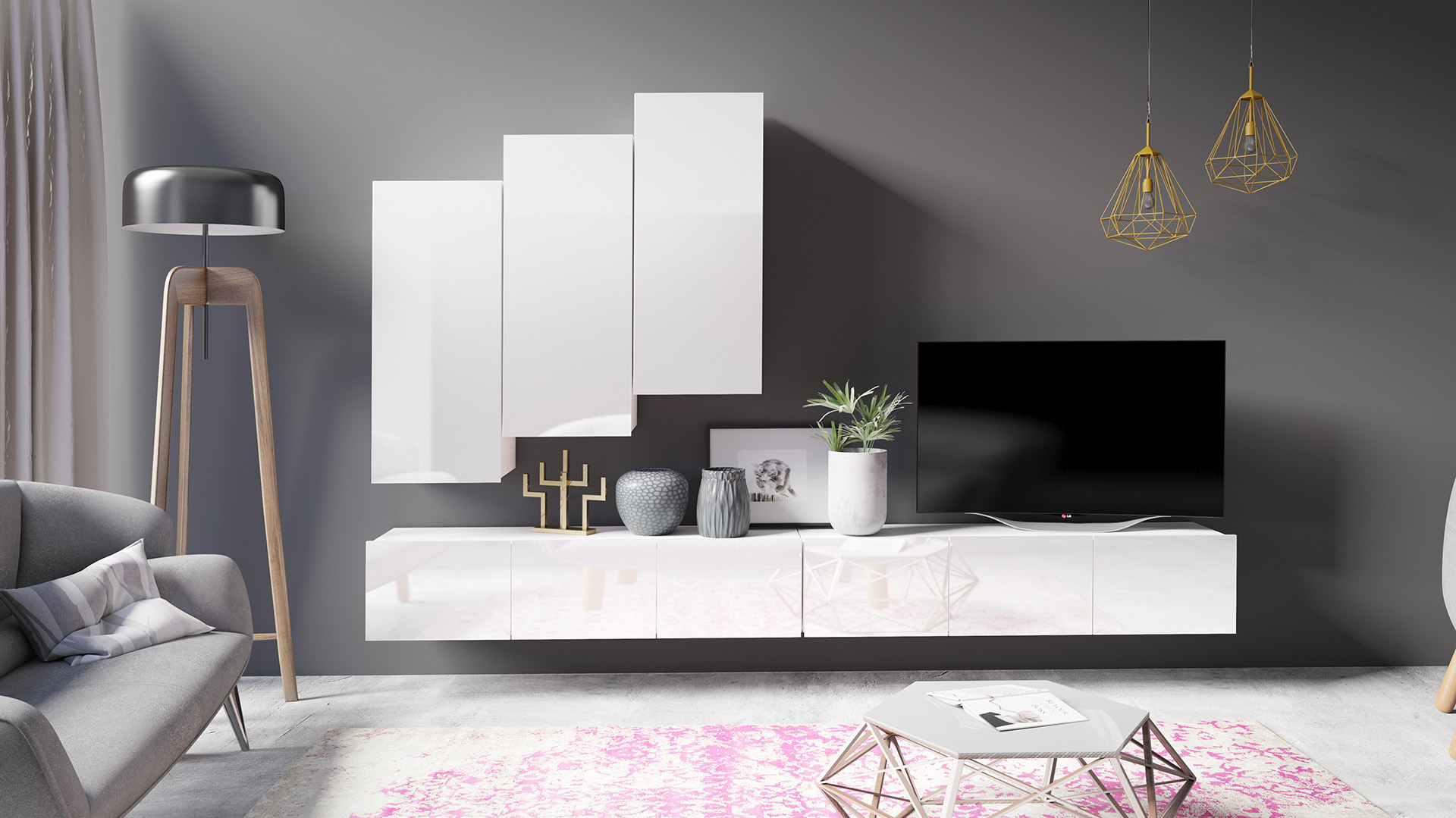 GAB Obývací stěna LORONA 20, Bílá 300 cm
