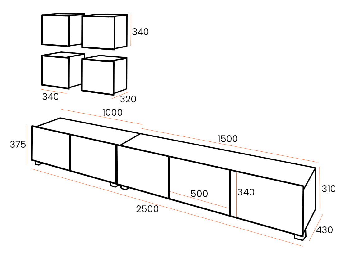 GAB Obývací stěna LORONA 18, Bílá 250 cm