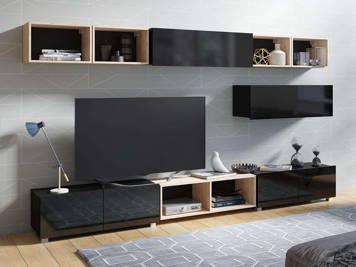 GAB Obývací stěna LORONA 26, Černá/ Dub Artisan 305 cm