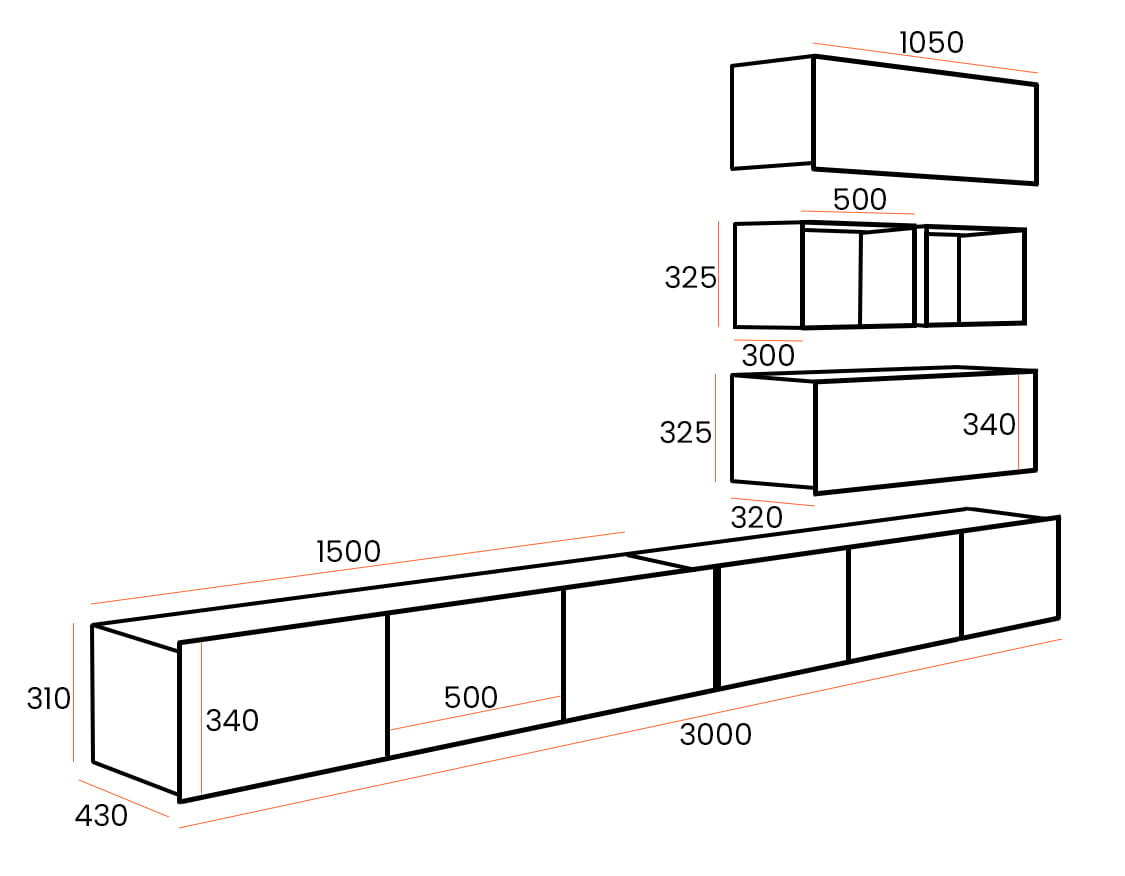 GAB Obývací stěna LORONA 27, Bílá/Zlatý dub 300 cm