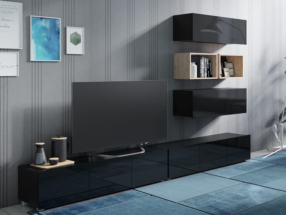 GAB Obývací stěna LORONA 27, Černá/Dub Artisan 300 cm