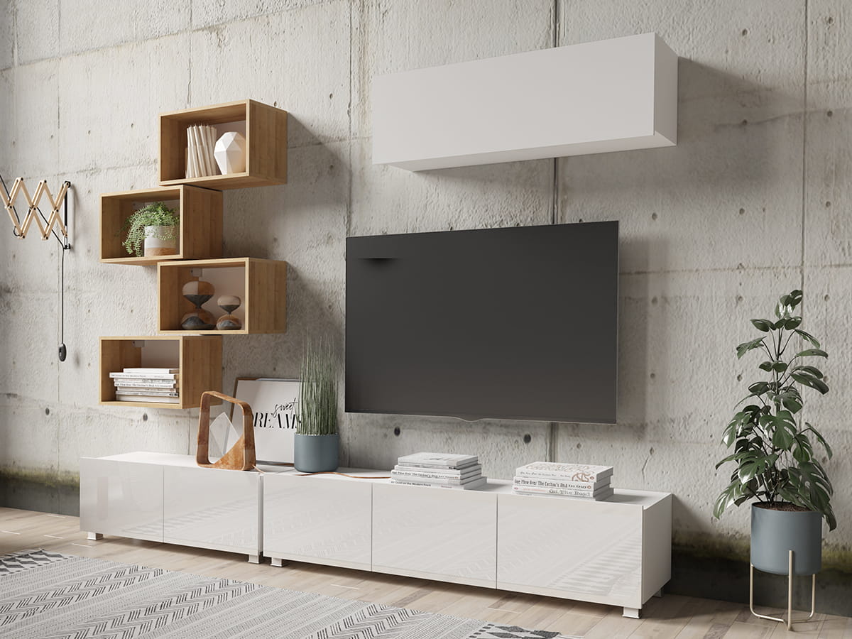 GAB Obývací stěna LORONA 29, Bílá/Zlatý dub 250 cm
