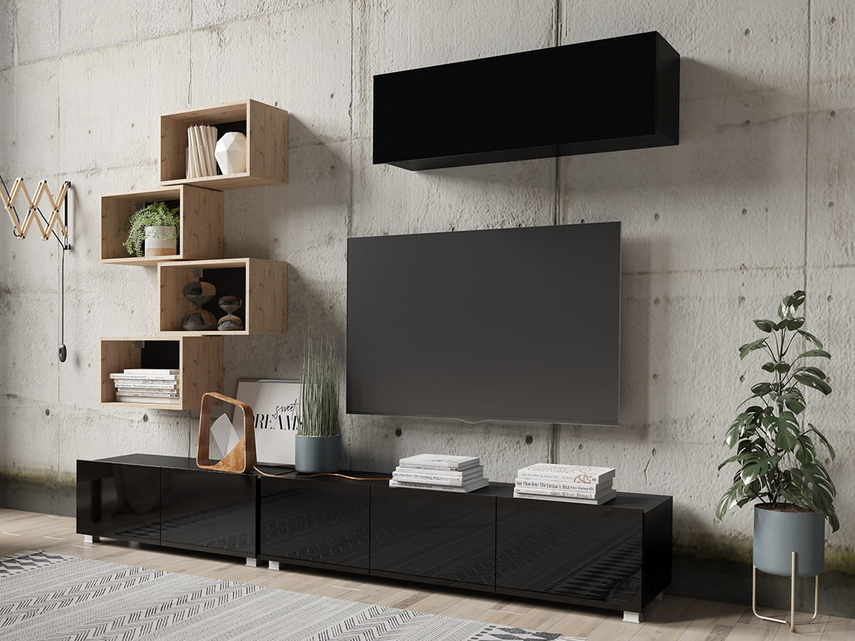 GAB Obývací stěna LORONA 29, Černá/ Dub Artisan 250 cm