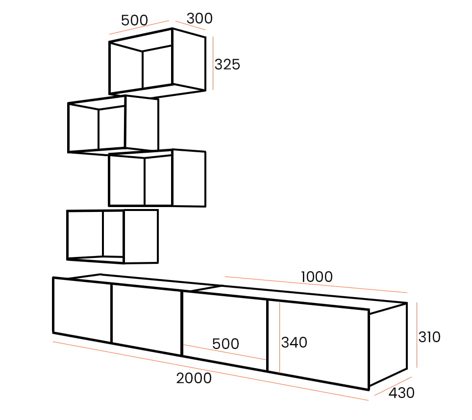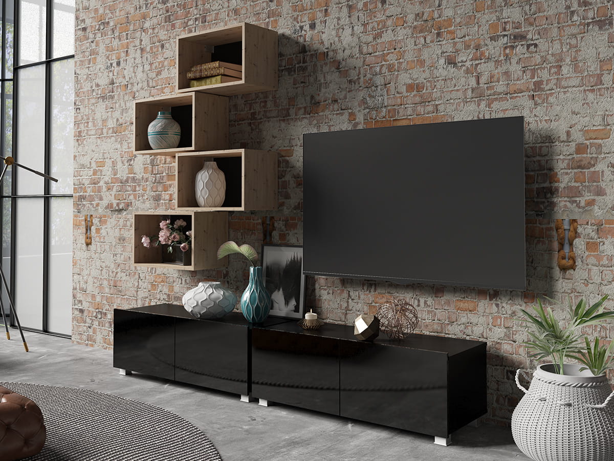 GAB Obývací stěna LORONA 30, Černá/Dub Artisan 200 cm