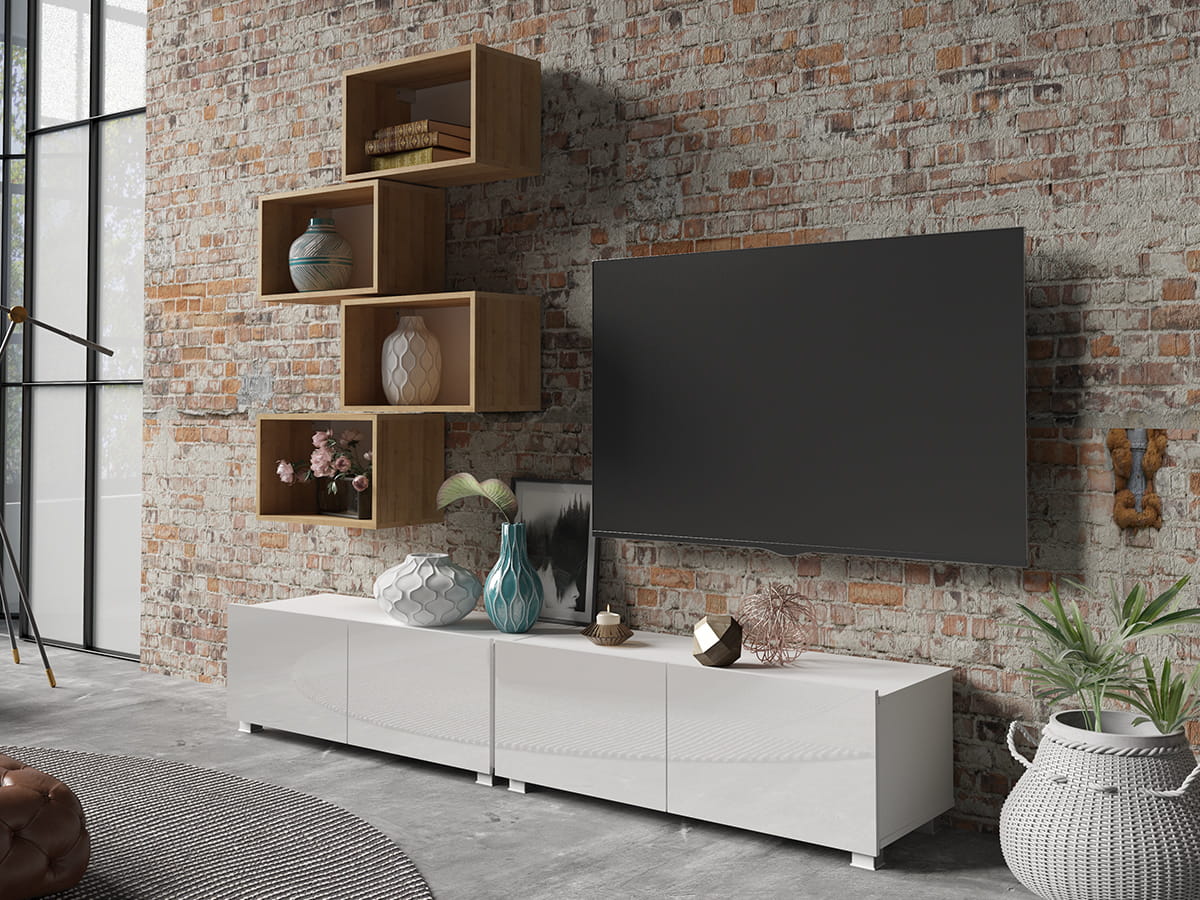 GAB Obývací stěna LORONA 30, Bílá/Zlatý dub 200 cm