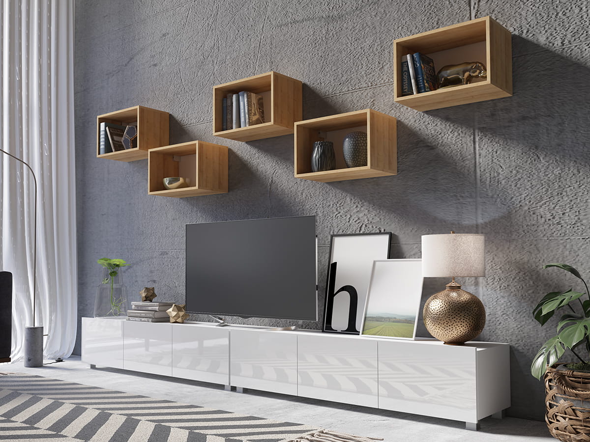 GAB Obývací stěna LORONA 32, Bílá/Zlatý dub 300 cm