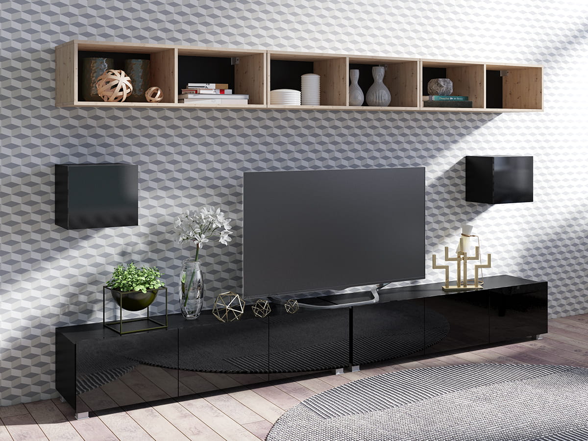 GAB Obývací stěna LORONA 34, Černá/Dub Artisan 300 cm