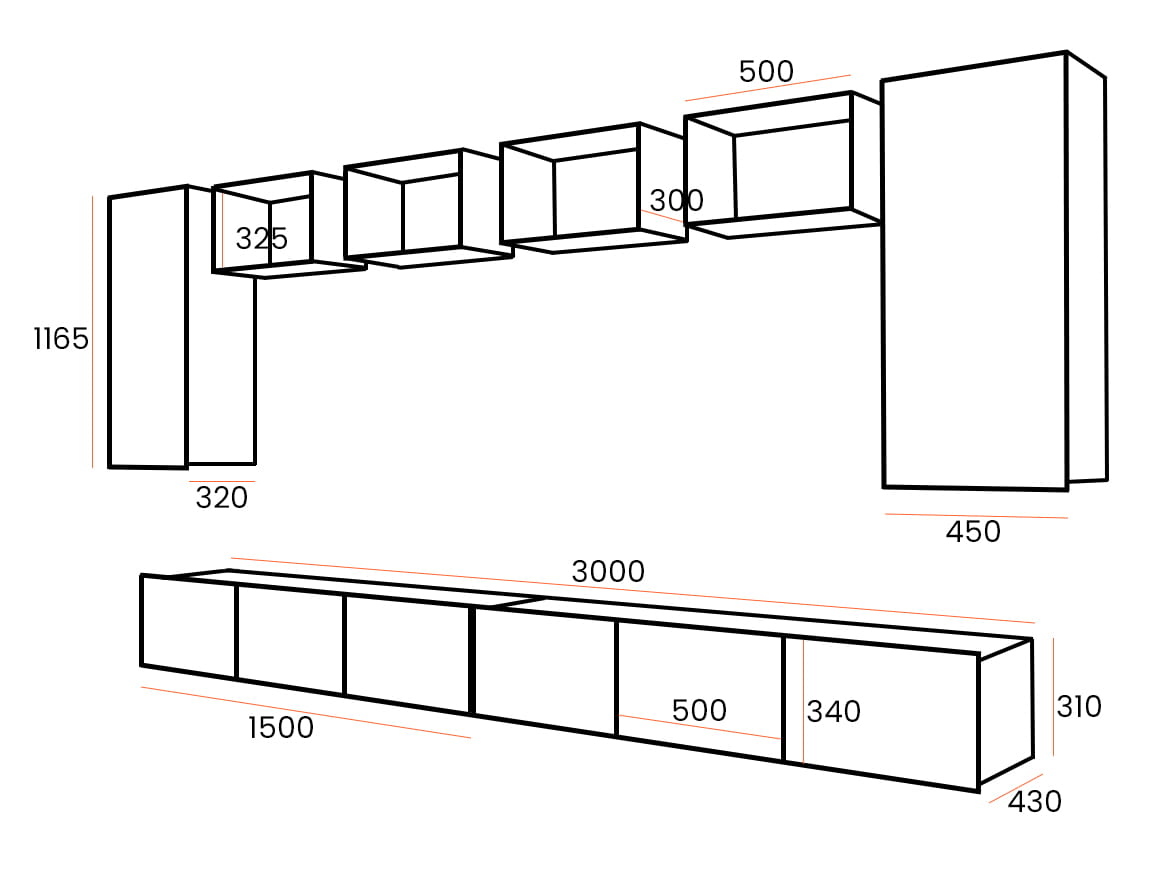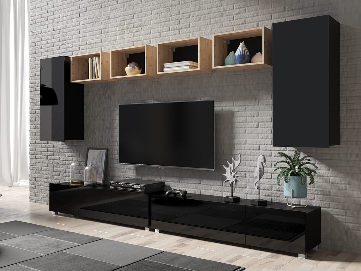 GAB Obývací stěna LORONA 35, Černá/Dub Artisan 300 cm