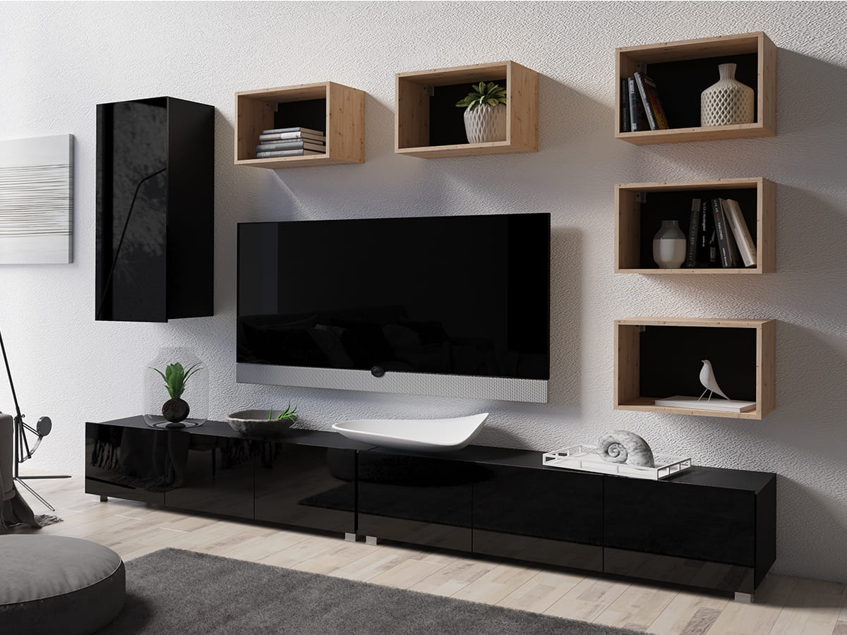 GAB Obývací stěna LORONA 37, Černá/Dub Artisan 300 cm