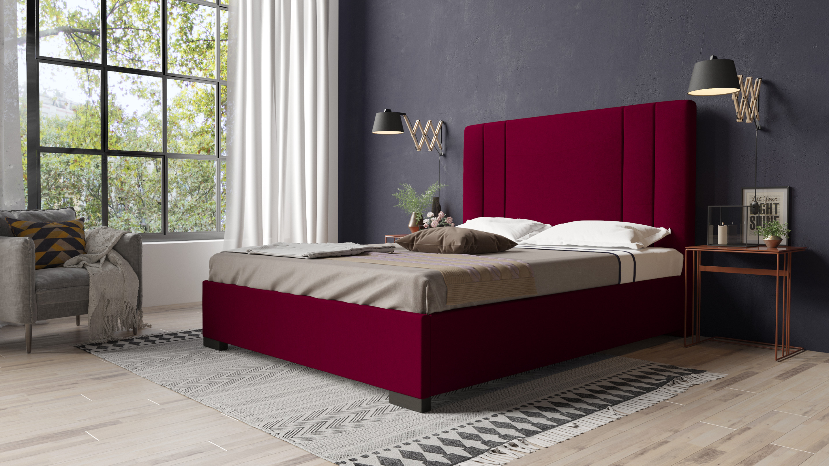 Čalouněná postel Berry s moderním designem je vybavena lamelovým roštem zajišťující optimální podporu Vašeho těla během spánku. Pří nákupu postele nabízíme také praktickou volbu úložného prostoru, který Vám poskytne dostatek místa pro uskladnění Vašich věcí. Čalouněná postel bez matrace umožňuje zvolit takovou matraci, která bude nejlépe odpovídat Vašim potřebám.