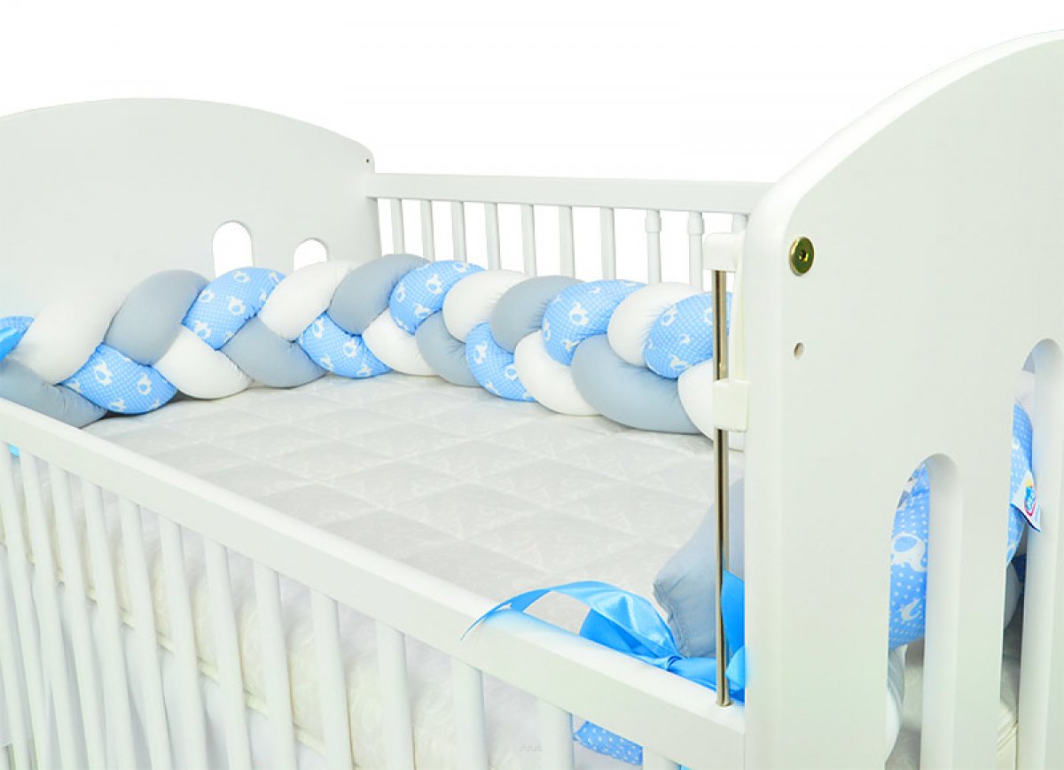 Mantinel do postýlky upletený do copu o délce cca 210 cm.