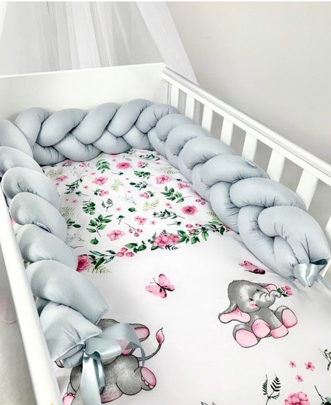 Mantinel do postýlky upletený do copu o délce cca 210 cm.