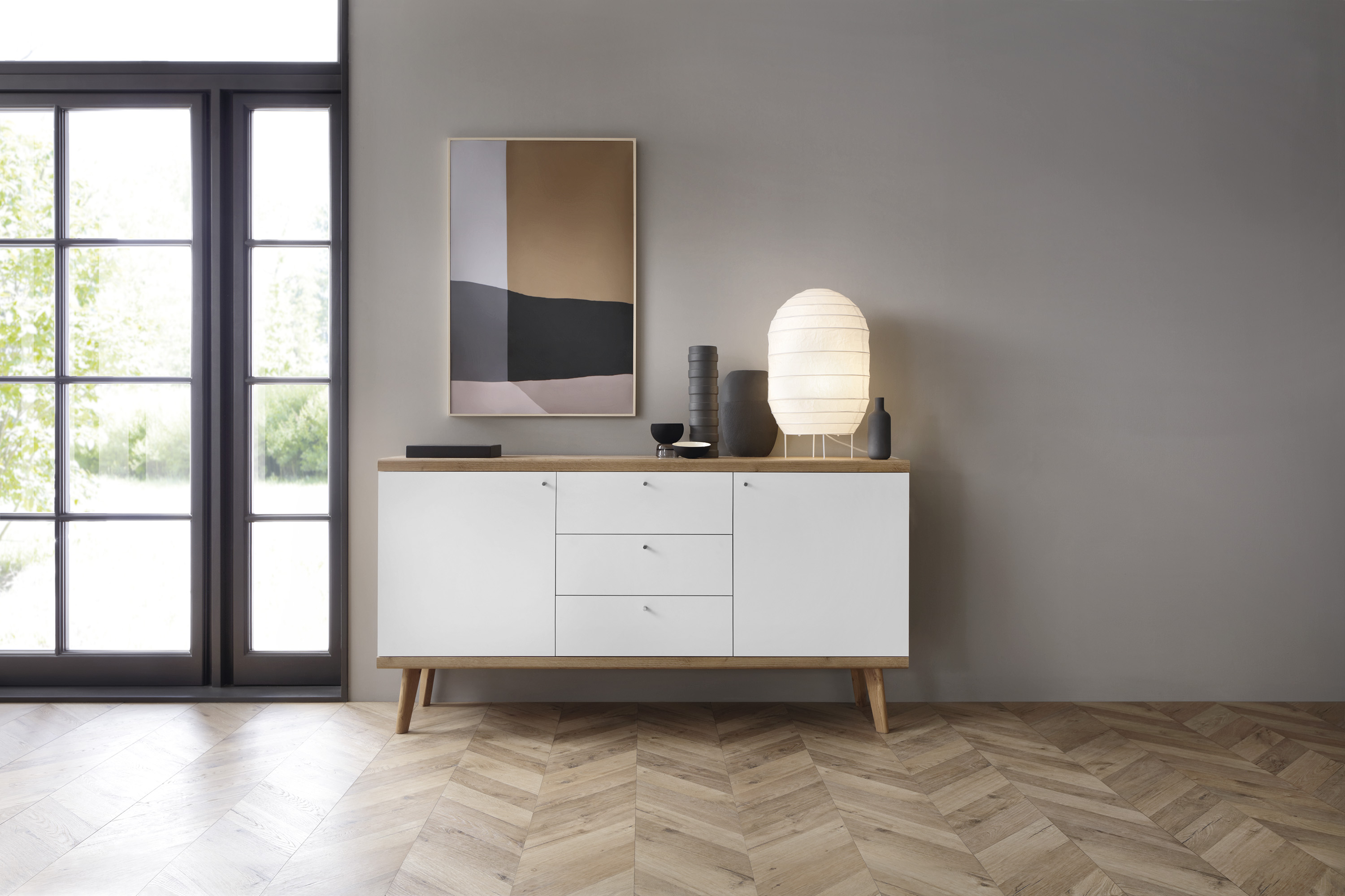 PSK Komoda PORO, Dub Riviera/Bílá 160 cm