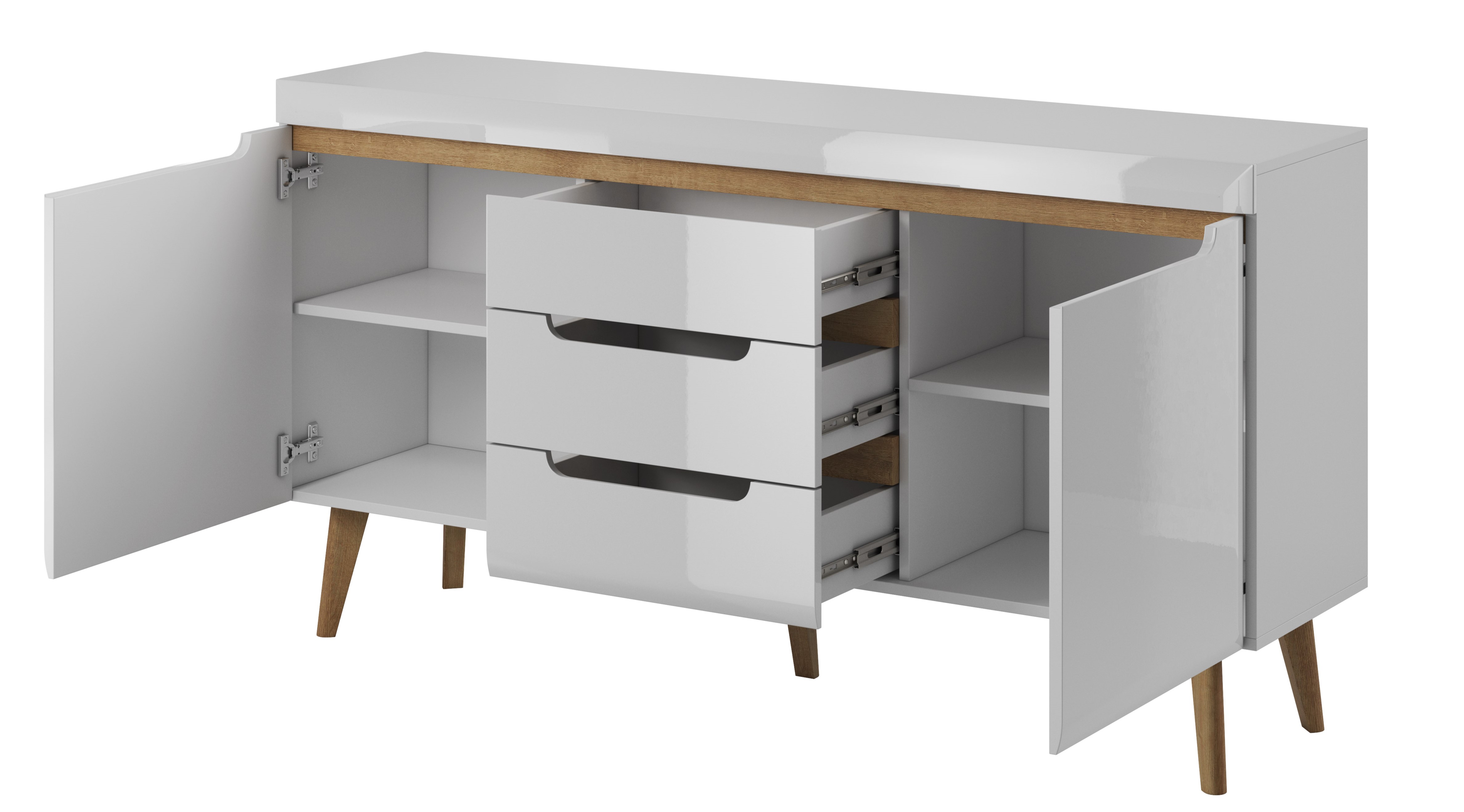 PSK Komoda NADIA, Bílá lesk/Dub Riviera 160 cm