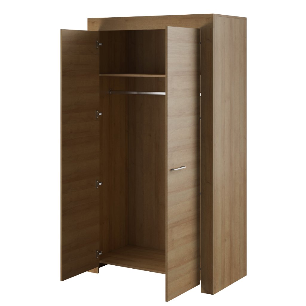Šatní skříň je široká 110 cm, nabízí dostatek úložného prostoru v podobě jedné police a uvnitř se nachází tyč pro zavěšení oděvů.