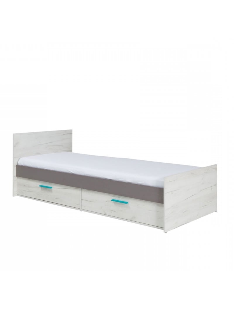Mdx Postel ROBIN 90 x 200 cm - Dub bílý/šedá Barva rukojetí: Tyrkysová 01