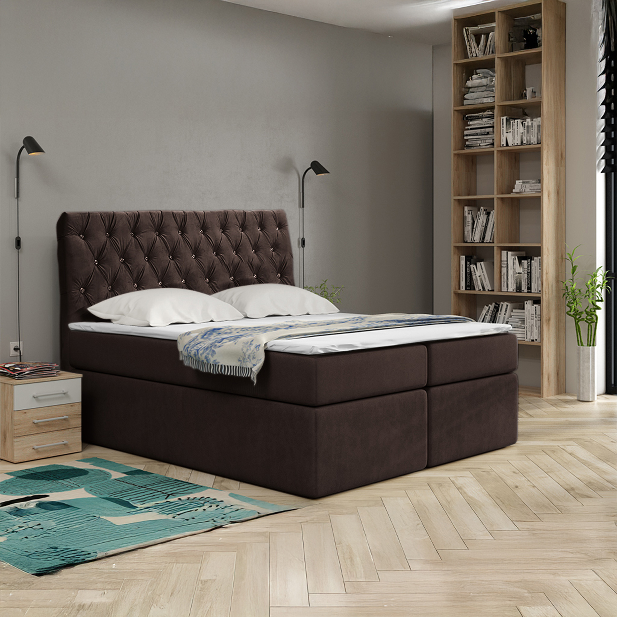 Kontinentální postel Luxurious - Cassablanca s čalouněním nabízí skvělý komfort pro spaní a odpočinek. Je vybavena vysokou a stabilnízákladnou s integrovaným úložným prostorem, který nabízí místo pro uložení věcí. Postel je vybavena prvotřídní taštičkovou matrací a polstrováním pro pohodlné ulehnutí. Na vrchní části matrace je umístěn pěnový polštář - topper, který dodává další vrstvu pohodlí. Se svou výškou 60 cm postel nabízí neuvěřitelné pohodlí při vstávání.