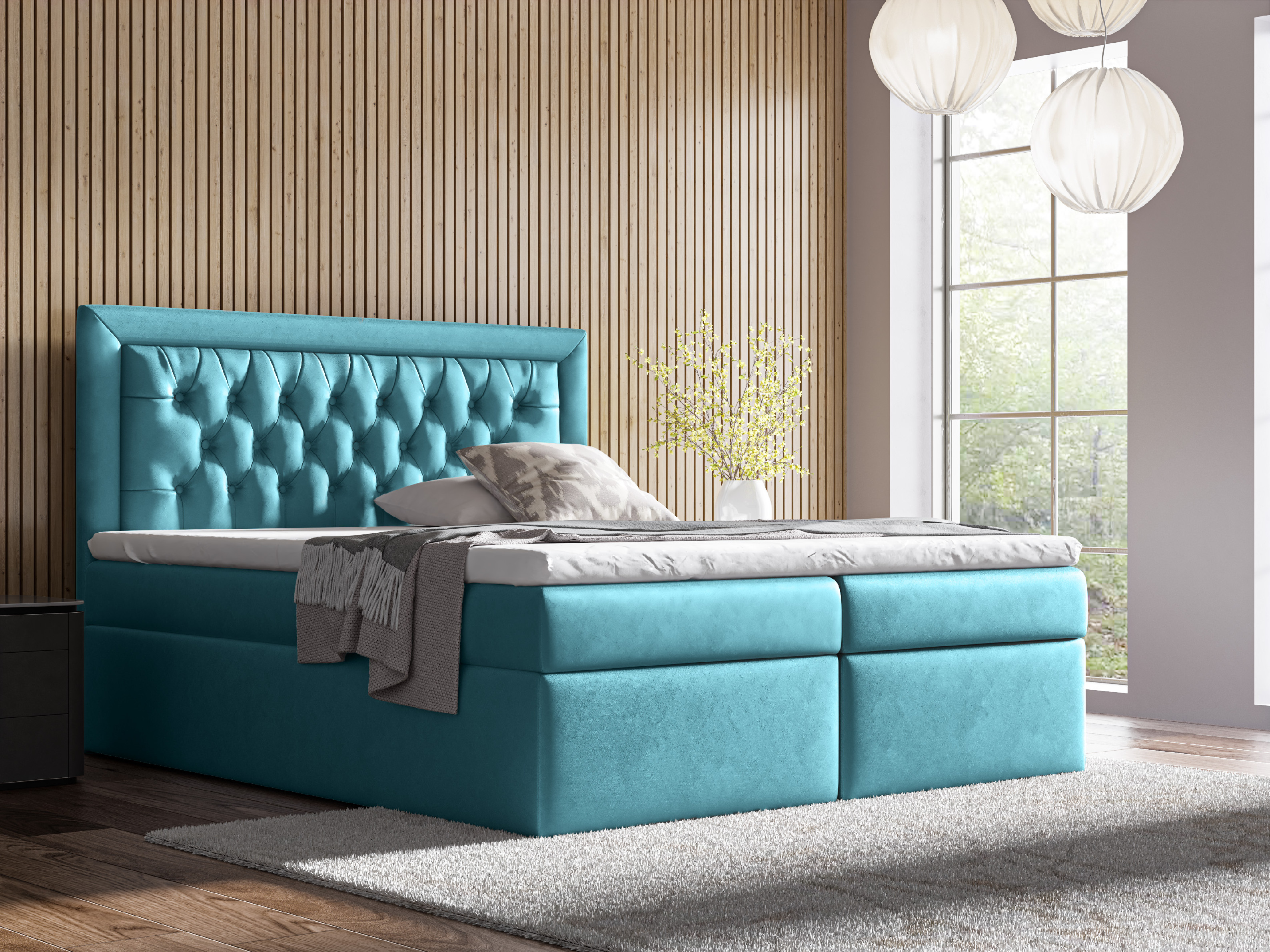 Kontinentální postel Mona s čalouněním nabízí skvělý komfort pro spaní a odpočinek. Je vybavena vysokou a stabilnízákladnou s integrovaným úložným prostorem, který nabízí místo pro uložení věcí. Postel je vybavena prvotřídní taštičkovou matrací a polstrováním pro pohodlné ulehnutí. Na vrchní části matrace je umístěn pěnový polštář - topper, který dodává další vrstvu pohodlí. Se svou výškou 60 cm postel nabízí neuvěřitelné pohodlí při vstávání.