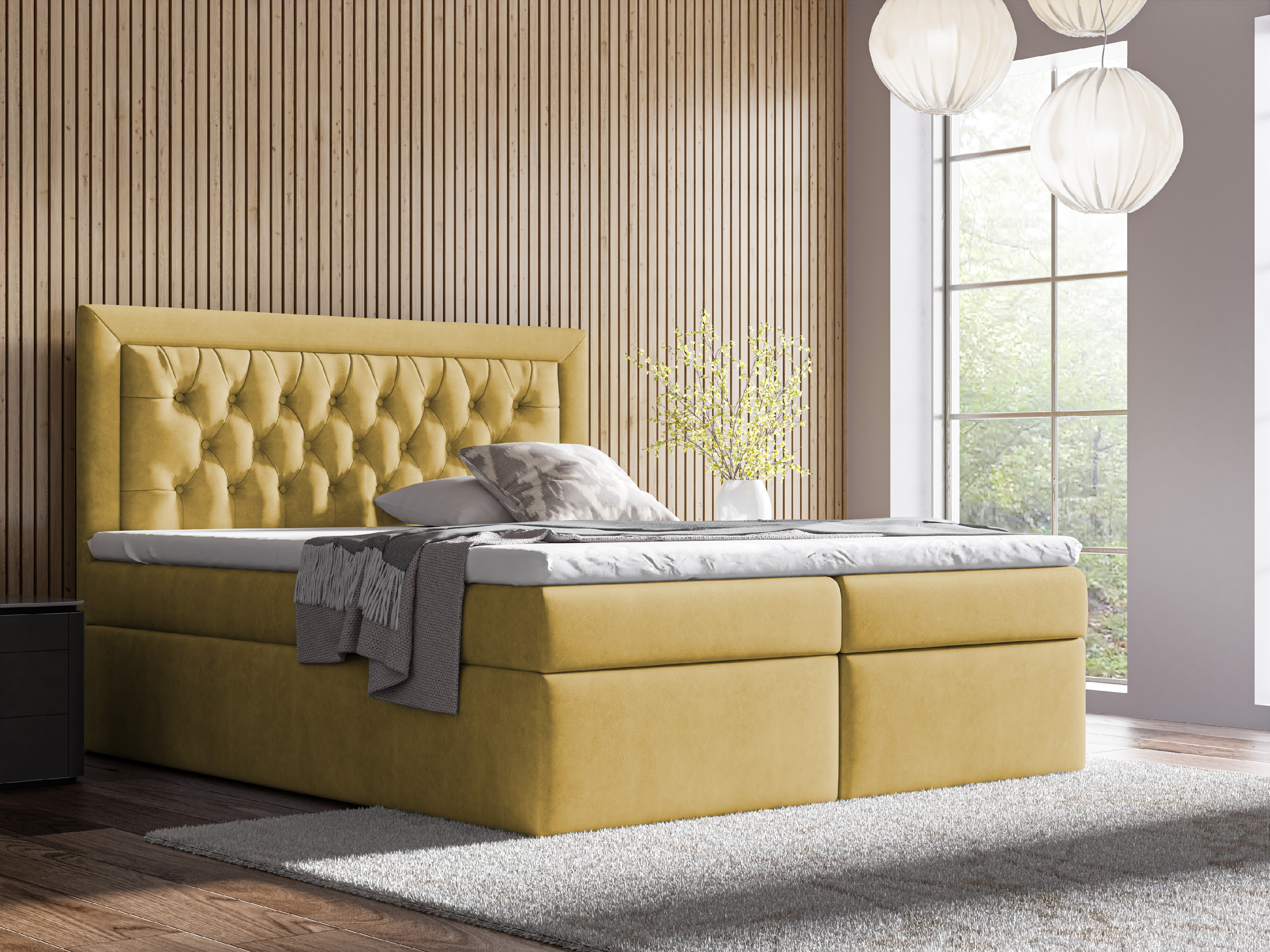 Kontinentální postel Mona s čalouněním nabízí skvělý komfort pro spaní a odpočinek. Je vybavena vysokou a stabilnízákladnou s integrovaným úložným prostorem, který nabízí místo pro uložení věcí. Postel je vybavena prvotřídní taštičkovou matrací a polstrováním pro pohodlné ulehnutí. Na vrchní části matrace je umístěn pěnový polštář - topper, který dodává další vrstvu pohodlí. Se svou výškou 60 cm postel nabízí neuvěřitelné pohodlí při vstávání.