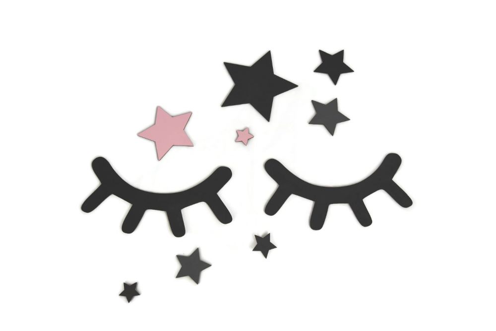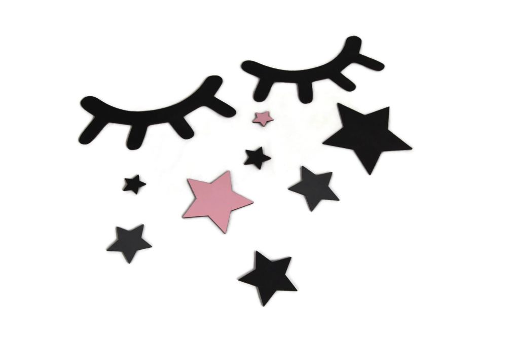 NEF Dřevěná dekorace na zeď - hvězdičky a spící očka - růžová