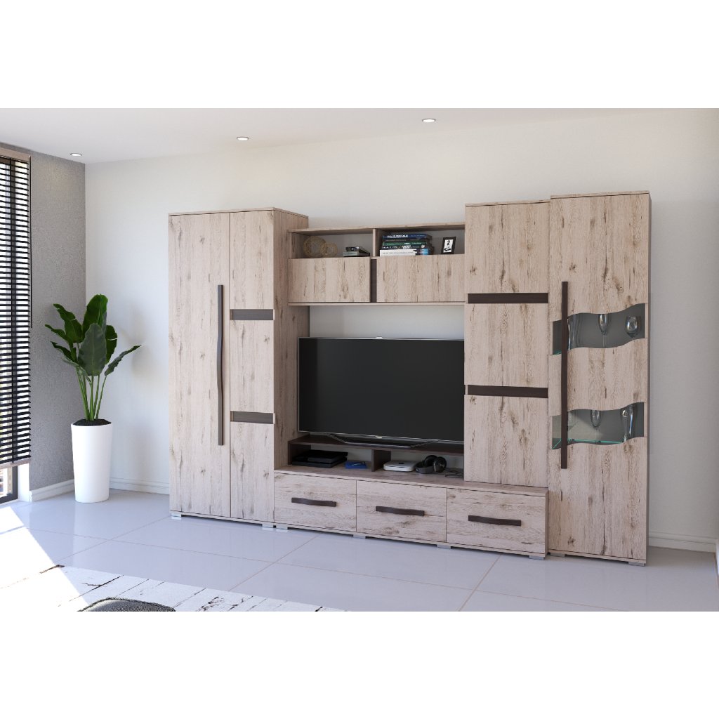 IDZ Obývací stěna SAN MARINO, 300 cm - Dub Craft šedá / Čokoládová