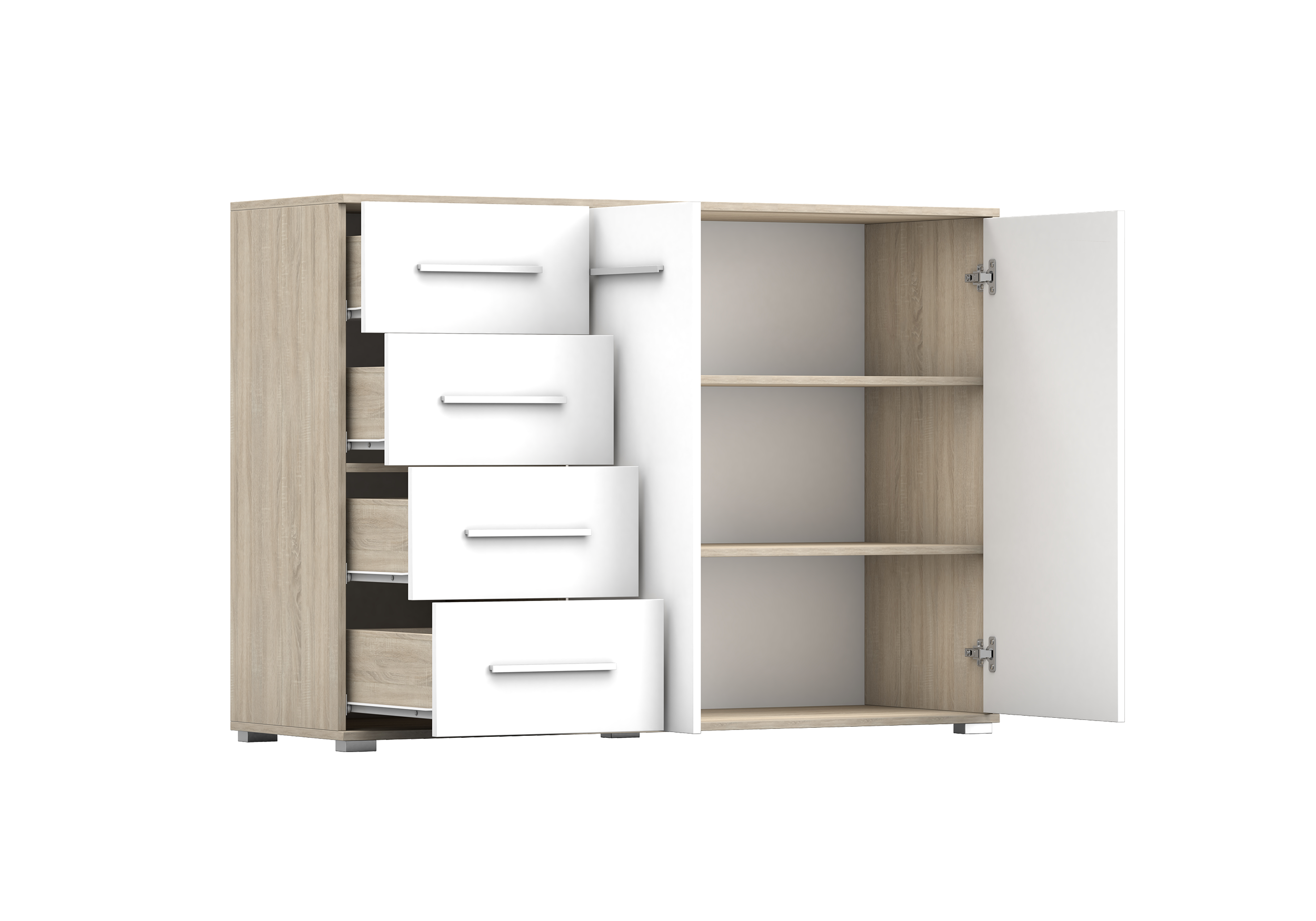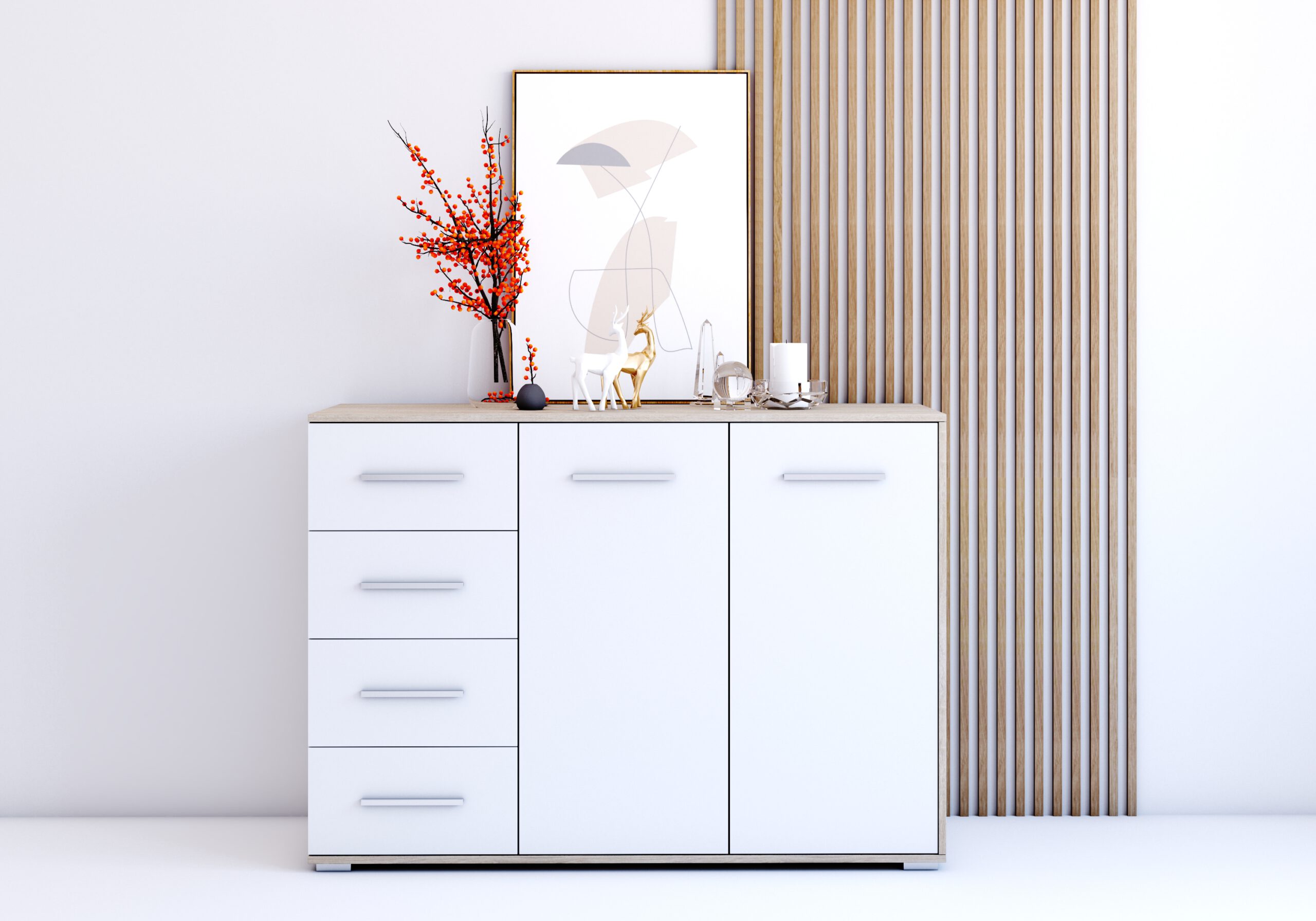 IDZ Komoda FRIDA 2D4S 01, 135 cm Bílá / Dub Sonoma