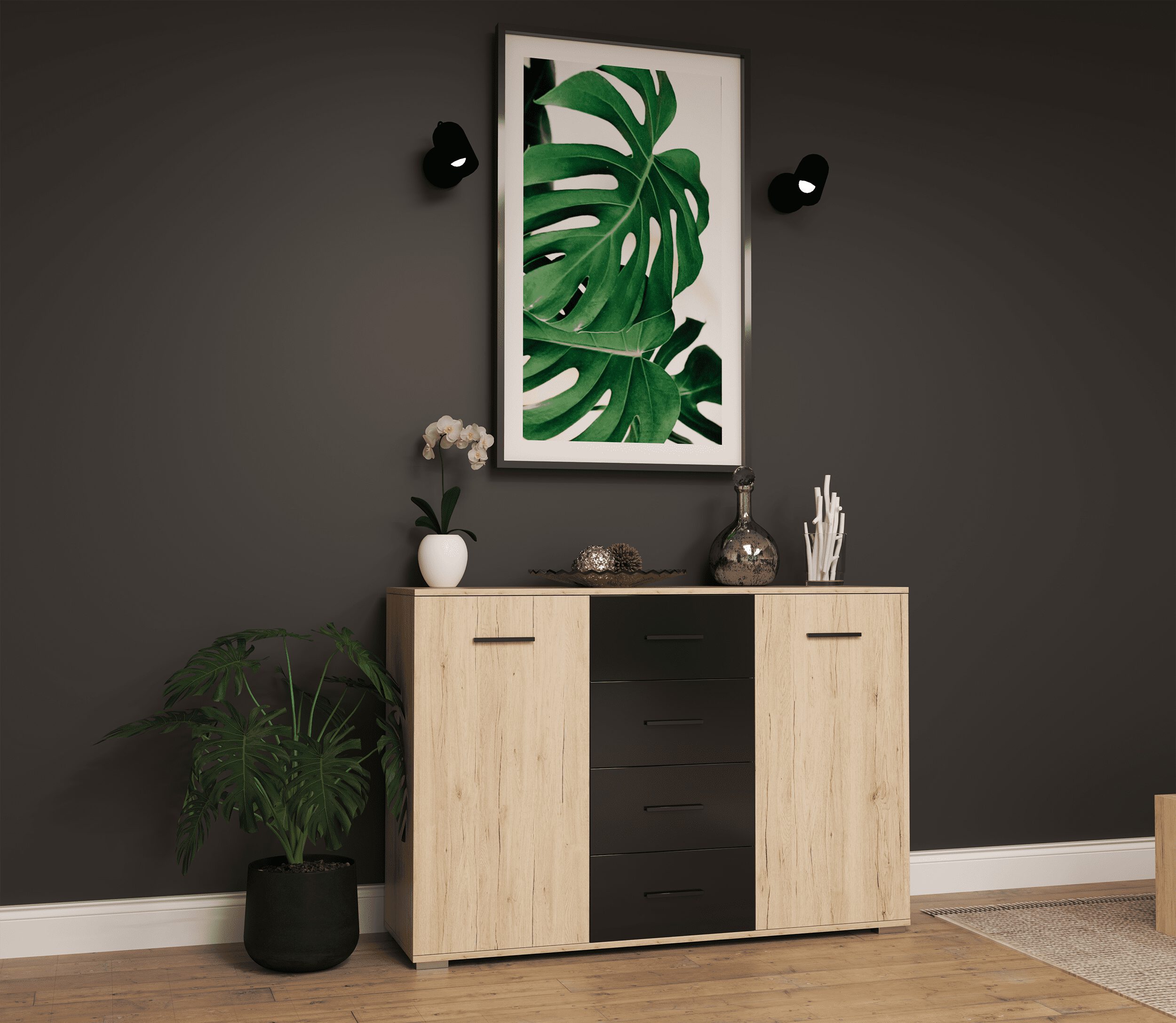 IDZ Komoda BARI 2D4S, 135 cm Dub San Remo/Černá