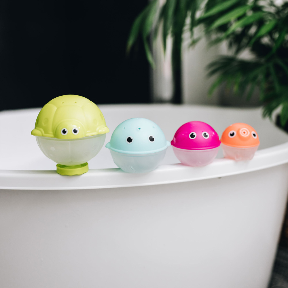 Veselá zvířátka - podporují chuť dítěte poznávat, učit se a vymýšlet nové zábavné hry ve vodě. Stimulují rozvoj zraku a hmatu.