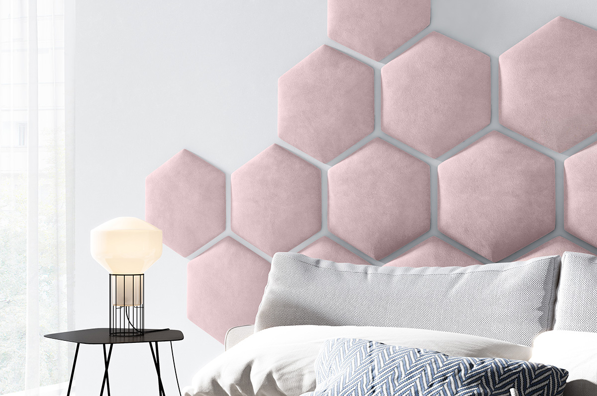 Eka Čalouněný panel Hexagon Trinity 40,5 cm x 35,3 cm - Světlá růžová 2319