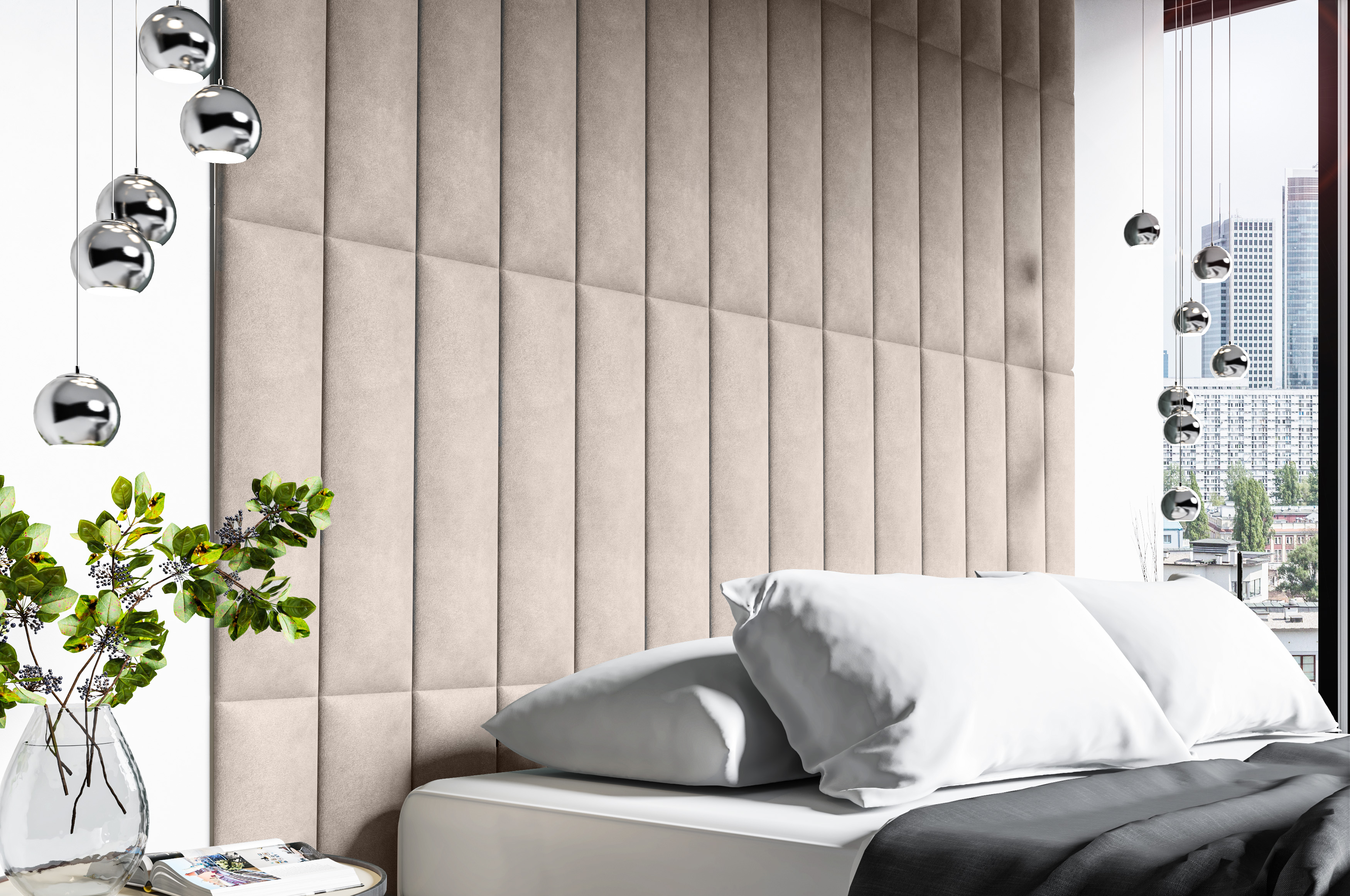 Hledáte elegantní povrchovou úpravu stěn, která dodá místnosti charakter? Naším návrhem jsou čalouněné panely. Dostupné jsou v módních látkách jako Trinity (plyš) a eko-kůže. Kombinací několika kousků získáte zajímavý vizuální efekt. Čalouněné panely jsou perfektní jako podpěra hlavy u postele. Měkká pěna a příjemná textura látky použitá na výrobu panelu umožní čtení knih a sledování televize v sedě.