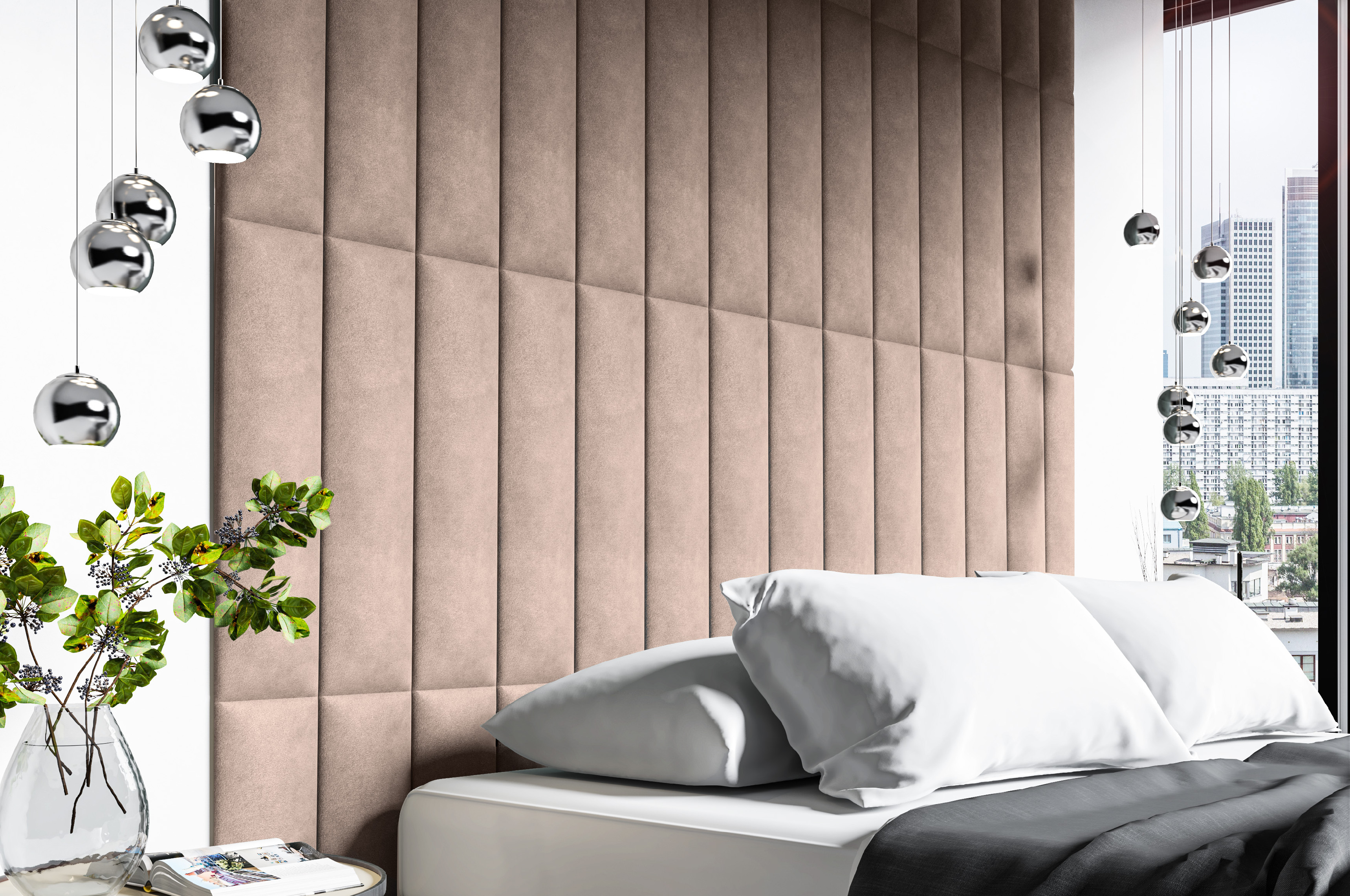 Hledáte elegantní povrchovou úpravu stěn, která dodá místnosti charakter? Naším návrhem jsou čalouněné panely. Dostupné jsou v módních látkách jako Trinity (plyš) a eko-kůže. Kombinací několika kousků získáte zajímavý vizuální efekt. Čalouněné panely jsou perfektní jako podpěra hlavy u postele. Měkká pěna a příjemná textura látky použitá na výrobu panelu umožní čtení knih a sledování televize v sedě.