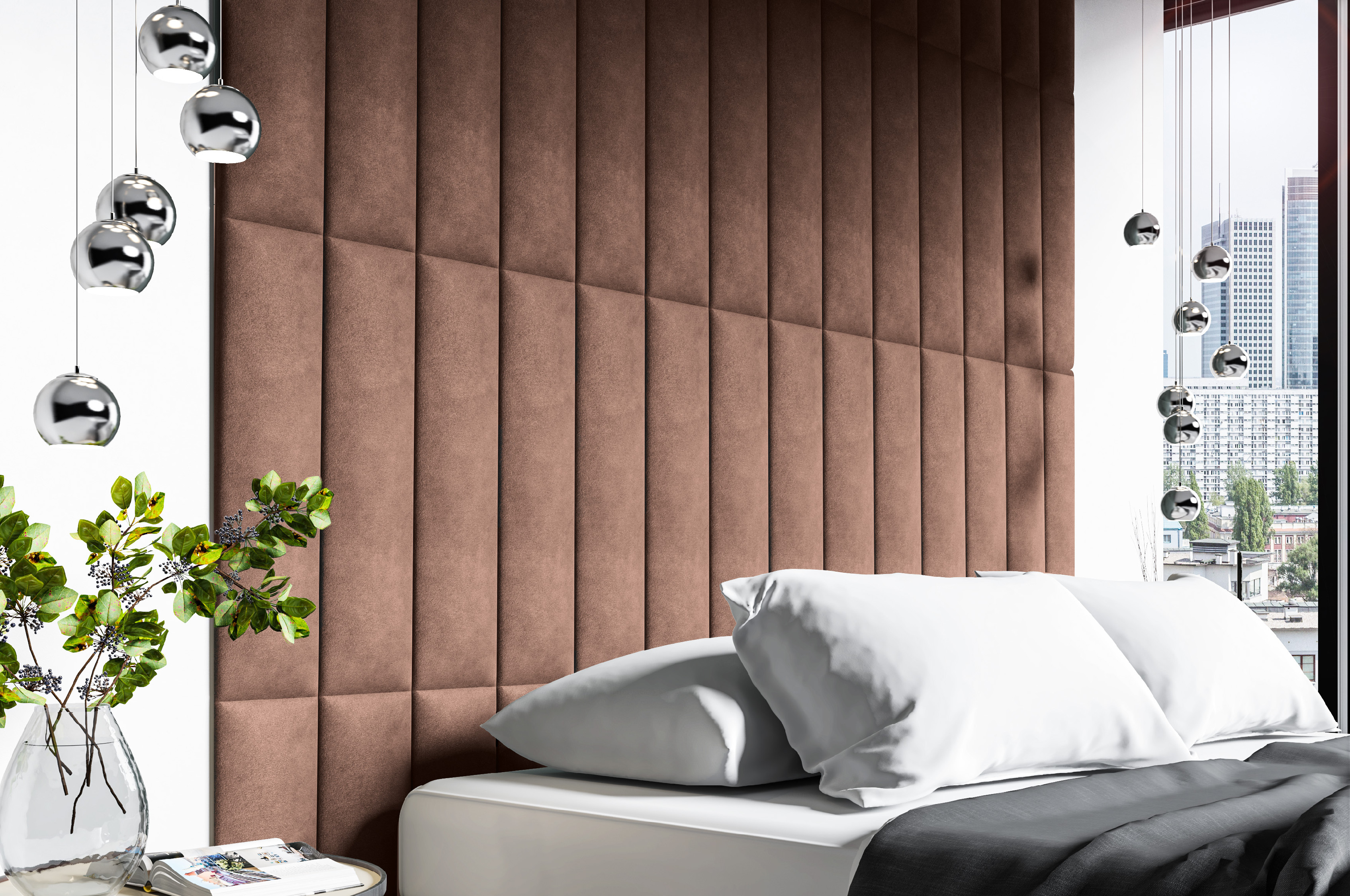 Hledáte elegantní povrchovou úpravu stěn, která dodá místnosti charakter? Naším návrhem jsou čalouněné panely. Dostupné jsou v módních látkách jako Trinity (plyš) a eko-kůže. Kombinací několika kousků získáte zajímavý vizuální efekt. Čalouněné panely jsou perfektní jako podpěra hlavy u postele. Měkká pěna a příjemná textura látky použitá na výrobu panelu umožní čtení knih a sledování televize v sedě.