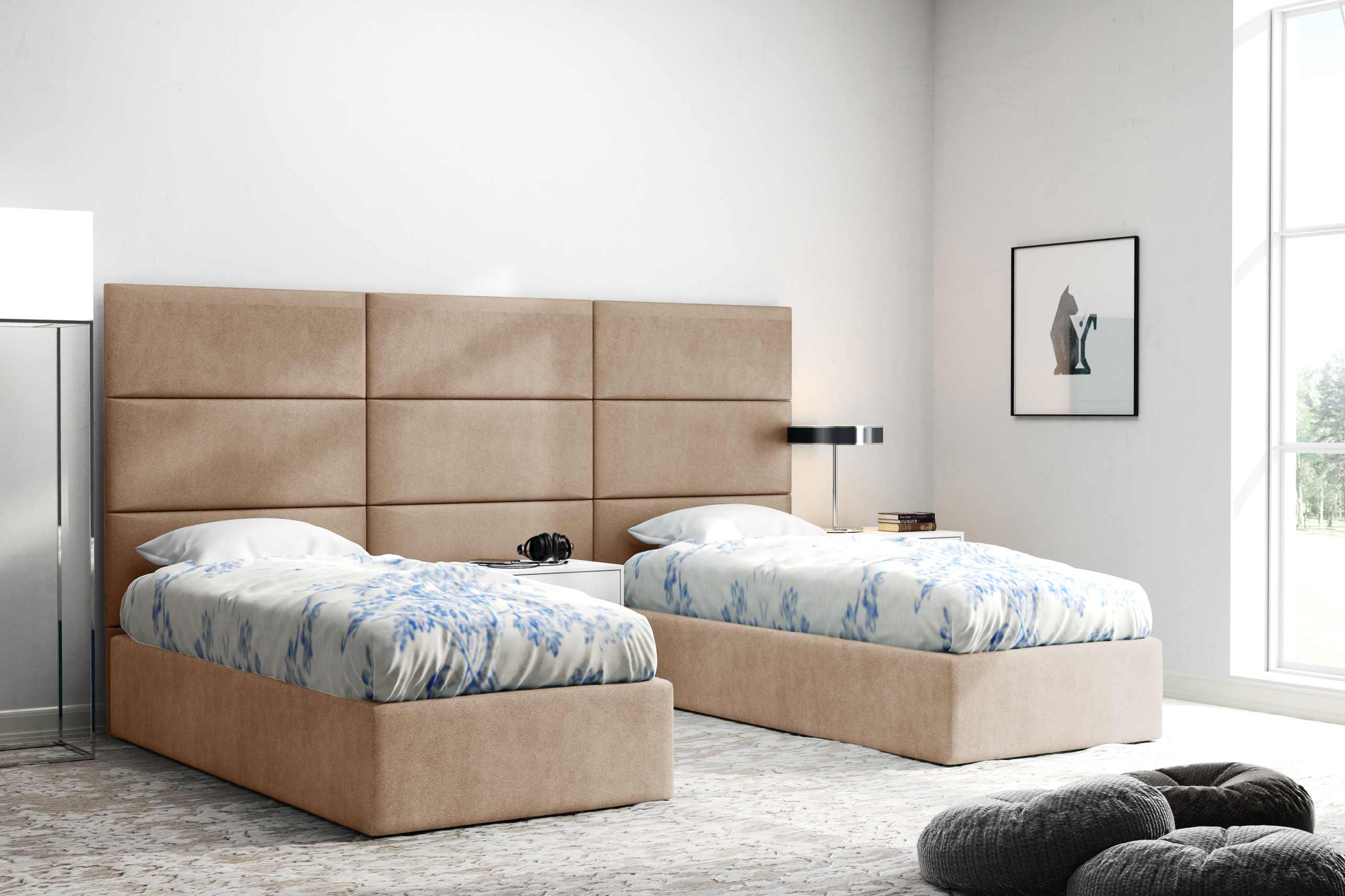 Hledáte elegantní povrchovou úpravu stěn, která dodá místnosti charakter? Naším návrhem jsou čalouněné panely. Dostupné jsou v módních látkách jako Trinity (plyš) a eko-kůže. Kombinací několika kousků získáte zajímavý vizuální efekt. Čalouněné panely jsou perfektní jako podpěra hlavy u postele. Měkká pěna a příjemná textura látky použitá na výrobu panelu umožní čtení knih a sledování televize v sedě.