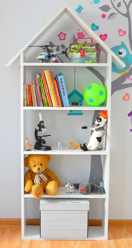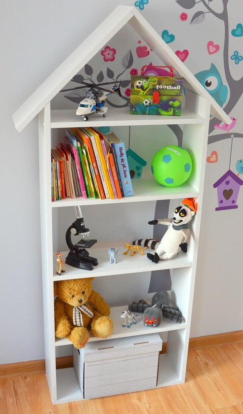 Kouzelná knihovna ve tvaru domečku. Ideální do každého dětského pokoje. Díky své velikosti pojme spoustu hraček, plyšáků, knih a dalších věcí, které kolem nás naši malí házejí.