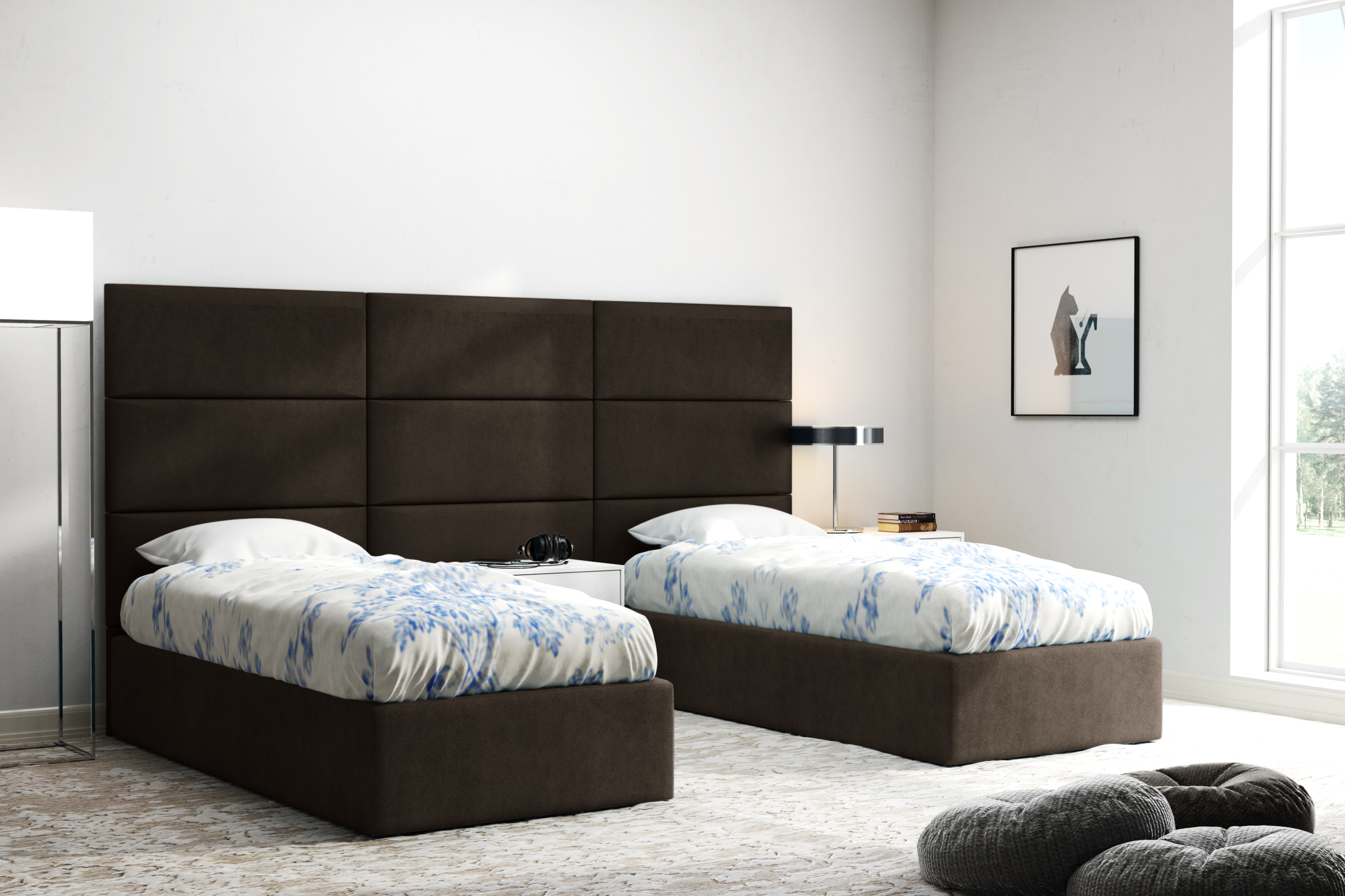 Hledáte elegantní povrchovou úpravu stěn, která dodá místnosti charakter? Naším návrhem jsou čalouněné panely. Dostupné jsou v módních látkách jako Trinity (plyš) a eko-kůže. Kombinací několika kousků získáte zajímavý vizuální efekt. Čalouněné panely jsou perfektní jako podpěra hlavy u postele. Měkká pěna a příjemná textura látky použitá na výrobu panelu umožní čtení knih a sledování televize v sedě.