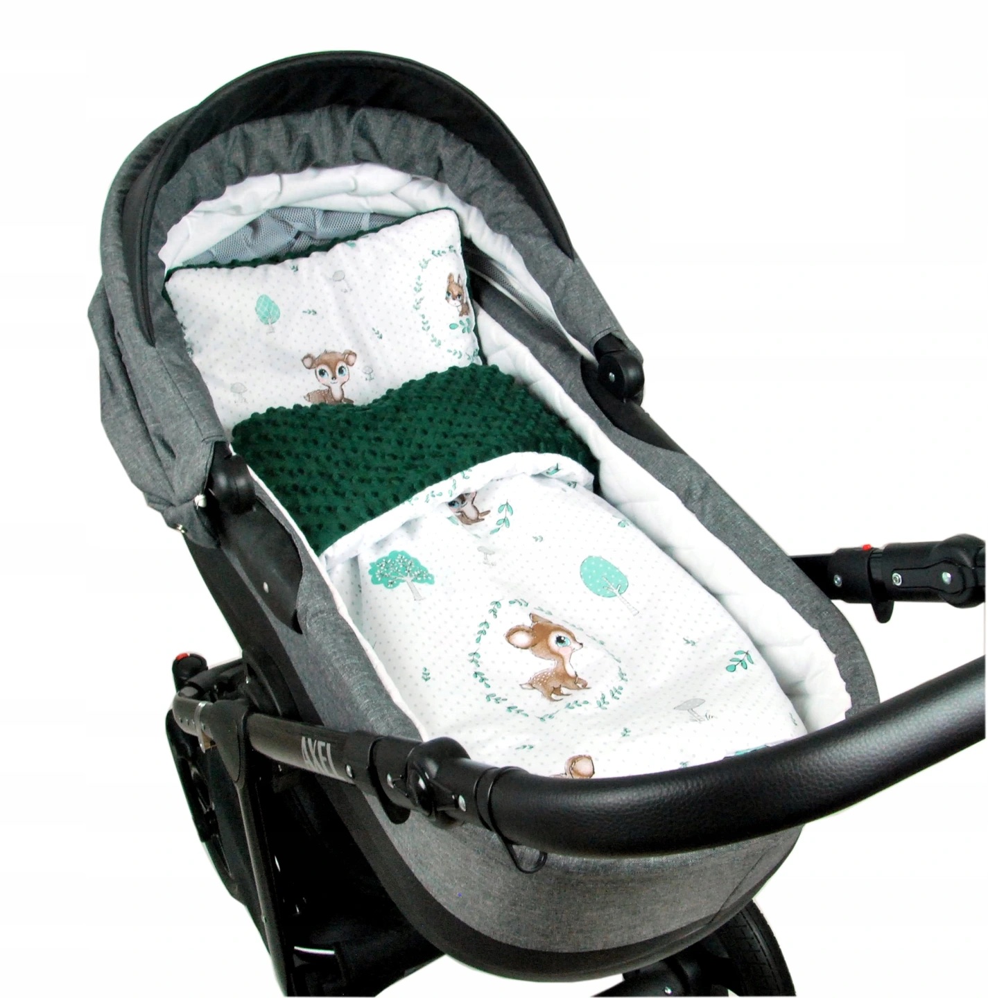BBL Polštářek + deka do kočárku minky - zelený bambi
