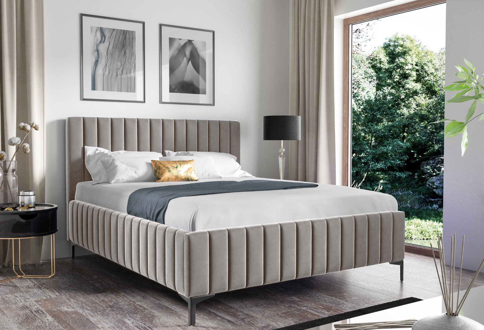 Čalouněné postele se vyznačují pohodlným a měkkým čalouněným čelem a bočními stranami. Tyto postele jsou obvykle vyrobeny z pevného rámu a jsou opatřeny pevnými rošty. Výplň čela a bočních stran postele bývá vyrobena z měkkých materiálů, jako je tkanina nebo kůže, a může být doladěna různými detaily, jako jsou zdobené knoflíky, aplikace nebo švy. Tyto postele mohou být dodávány v různých velikostech, barvách a stylech, což jim umožňuje být umístěny do různých typů interiérů, od moderního po tradiční. Navíc čalouněné postele nabízejí dostatek prostoru pro uskladnění, jako jsou úložné prostory pod matraci.