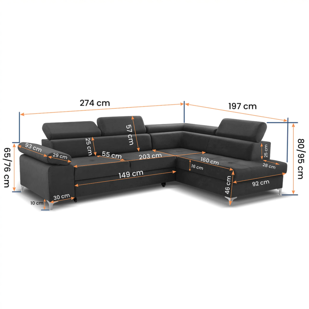 Rohová sedací souprava MADRID je spolehlivým parťákem do každého obýváku. Nabízí pohodlné sezení pro rodinu i návštěvy – a když se večer protáhne, snadno ji rozložíš na prostorné lůžko. Uvnitř se skrývá praktický úložný prostor, kam se vejdou deky, peřiny nebo třeba tvoje oblíbené dobroty. Potahy jsou ušité z tkanin s certifikací OEKO-TEX®, takže si můžeš být jistý, že jsou šetrné k tobě i k přírodě. A aby ladila i s tvým vkusem? Vyber si barvu látky – sedačku nabízíme v několika elegantních variantách. ️ Rohové pohodlí ve tvaru L ️ Rozkládací lůžko Úložný prostor Výběr látky Pohodlí na každý den ✨ Elegantní vzhled Jednoduchá montáž V balení najdeš: Doprava až domů Podělte se s námi o Váš názor. Vaše zkušenost pomůže ostatním zákazníkům při výběru té správné postele pro jejich pohodlný spánek. Sedačka je dodávána bez dekorací zobrazených na ilustračních fotografiích. Napište nám, rádi poradíme s čímkoli, co vás zajímá.Pohodlí ve tvaru L - jako L(áska) k odpočinku