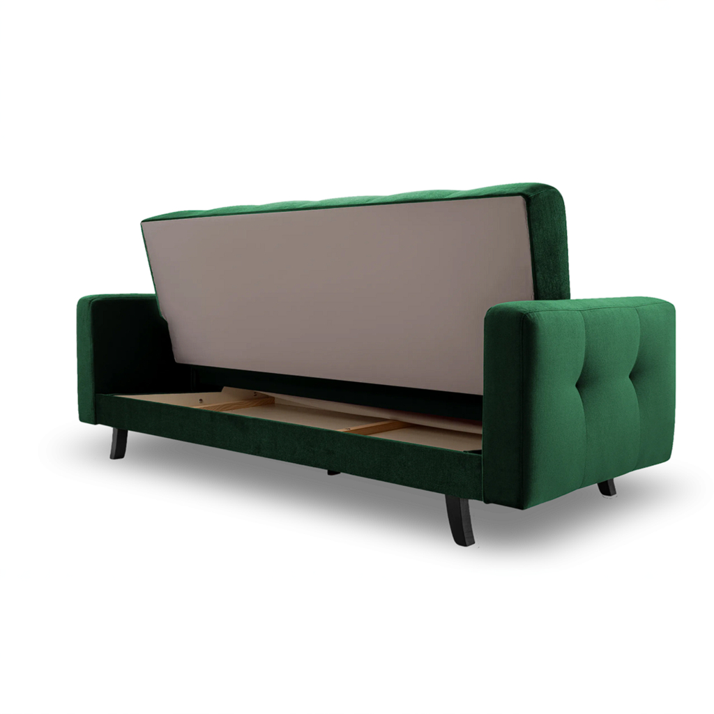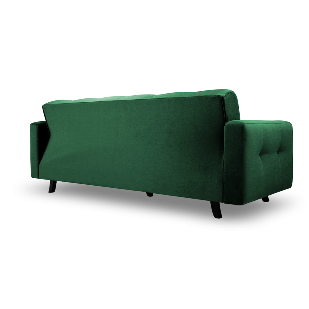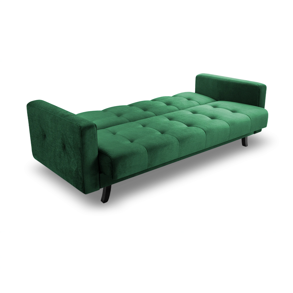 Korpus pohovky, soustružené dřevěné nožky, spojovací materiál a montážní návod.