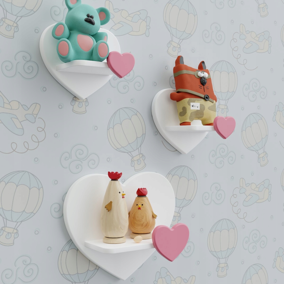 ID Sada 3 kusů poliček - bílá s růžovou - srdíčko